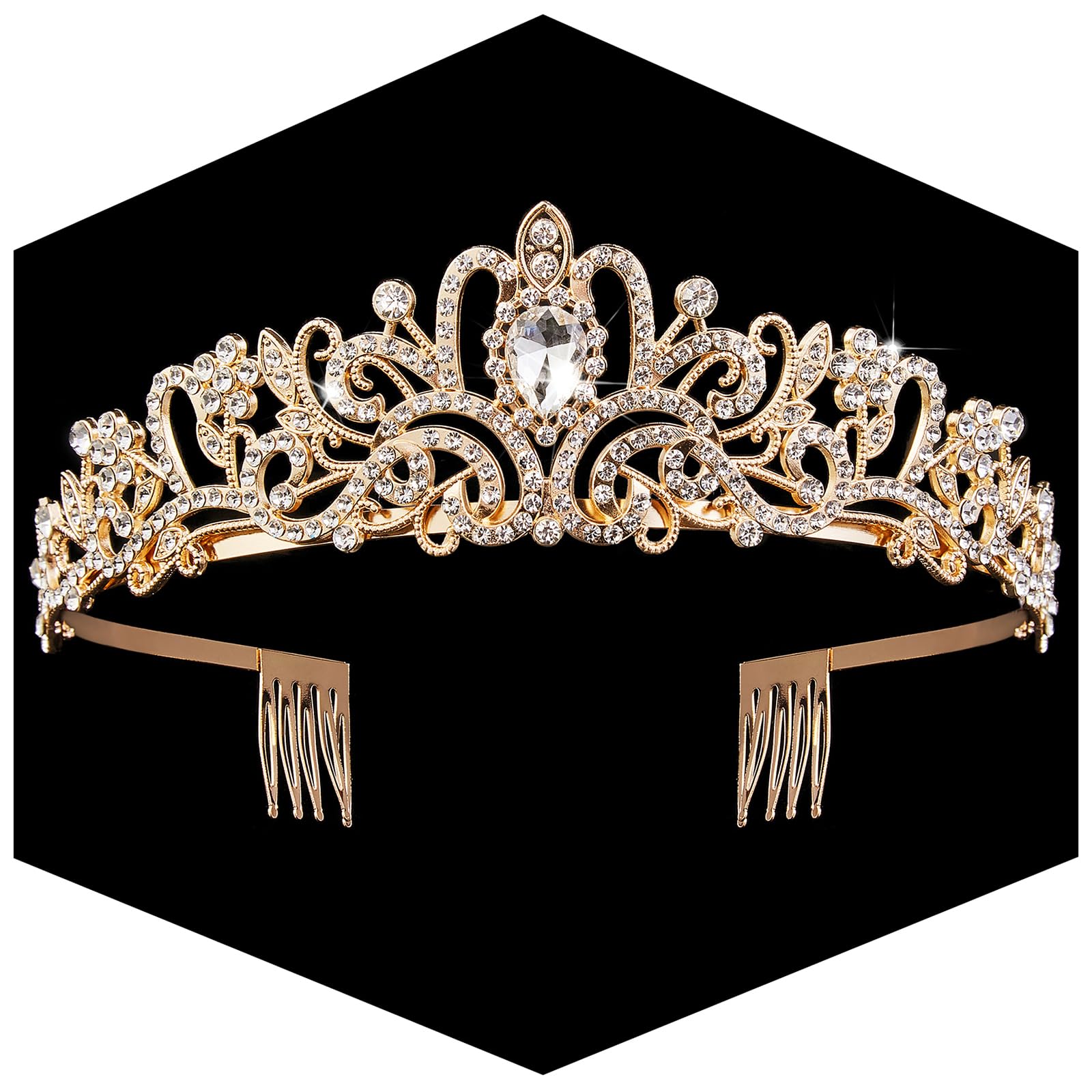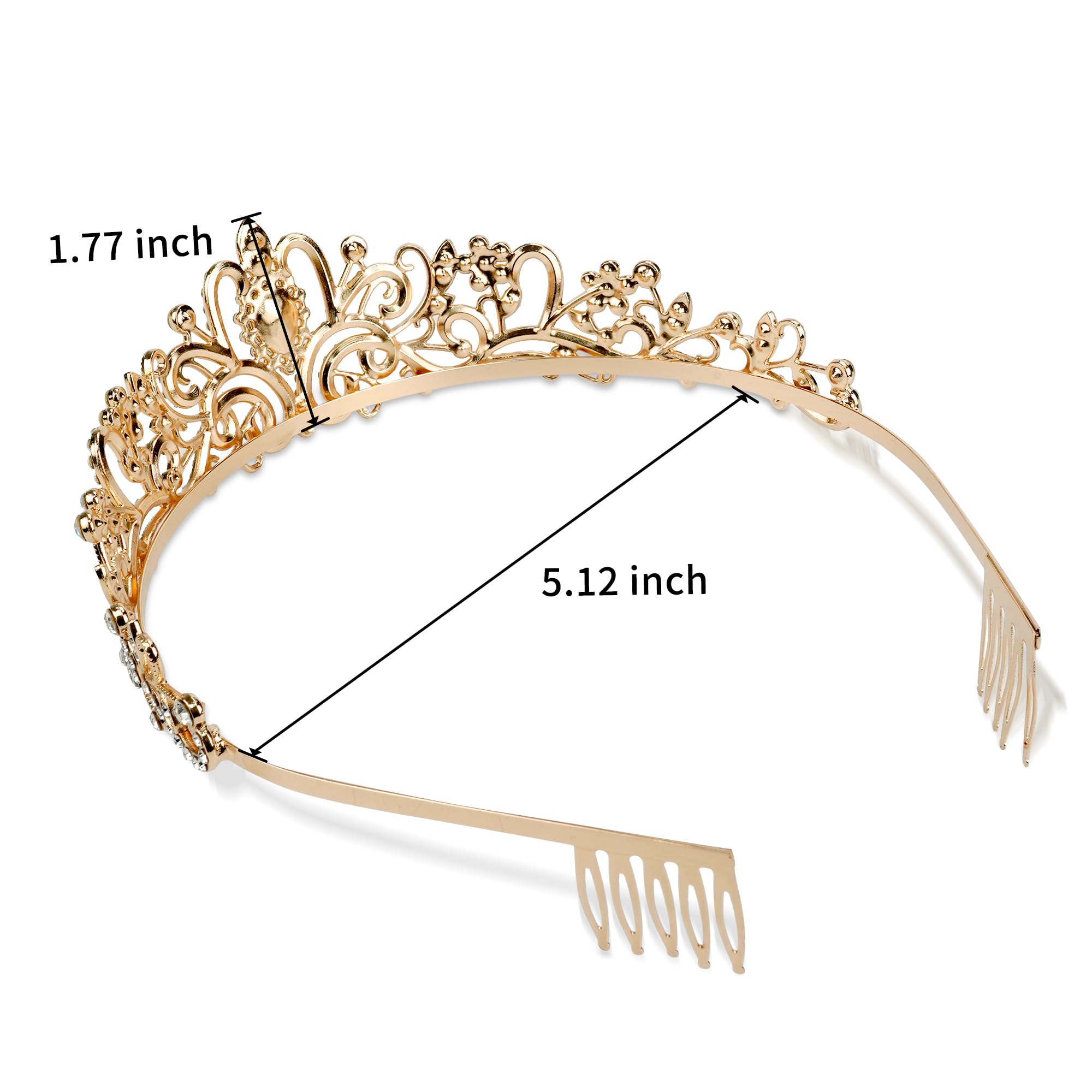 One Size Fits Most: Our crown is gold and measures approximately 1.77 inches (4.5cm) tall and 5.12 inches (13cm) in diameter. Specially designed to fit women's head size, suitable for adults, perfectly fit your charming hairstyle and face shape.