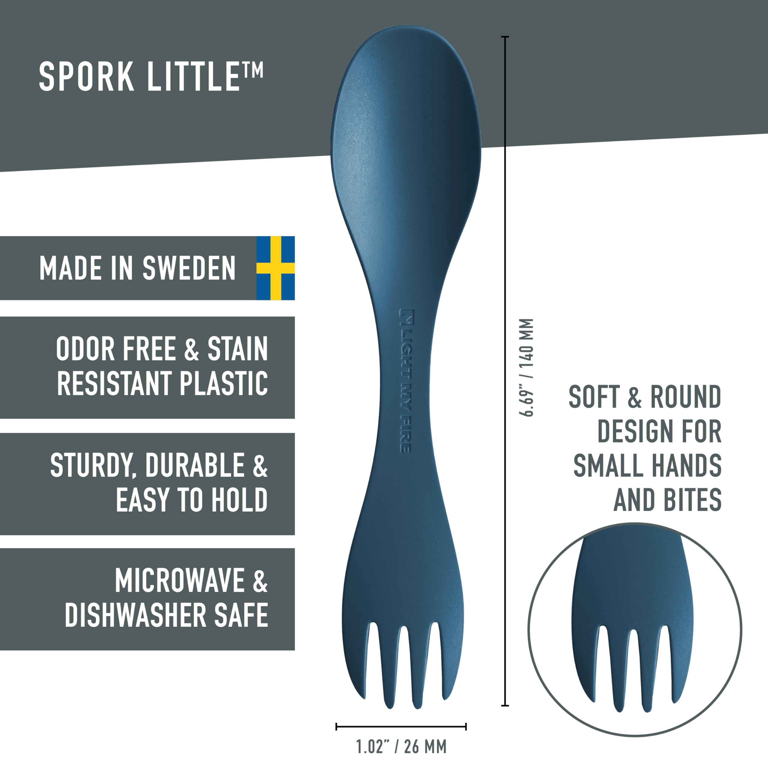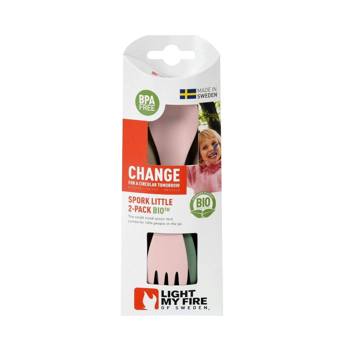 GOOD-BYE DISPOSABLES our small spoon-fork camping utensil set spork is the only cutlery “little people on the go” will ever need for eating while on urban or outdoor adventures. Starve the landfills with our responsibly made utensils. 2 sporks. Green/Pink