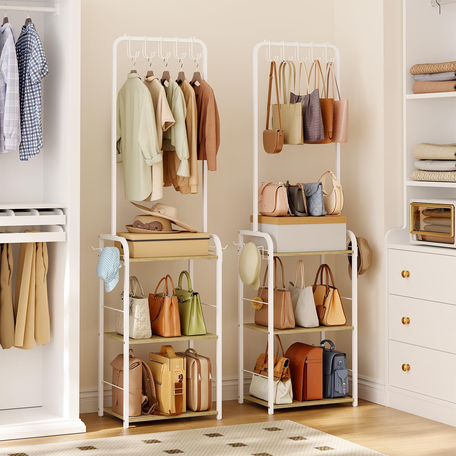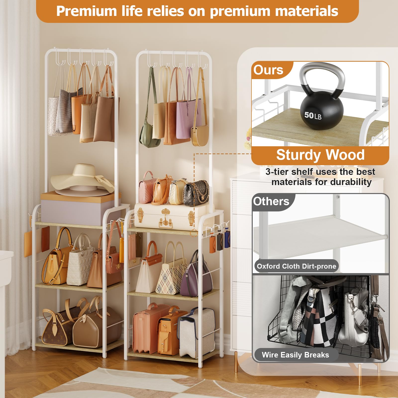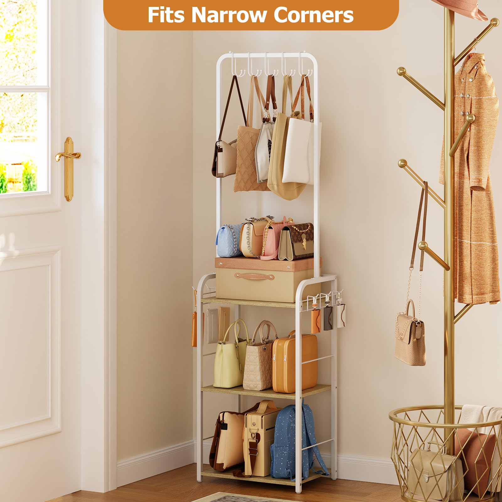 【Space-Saving Vertical Structure】The upright structure of this purse rack does not need to use much floor space, and can even make full use of the high space to store more handbags. Therefore this narrow purse organizer is suitable for small places, such as the corner of bedroom, cloakroom, living room, and next to closets, clothing racks and dressers. This purse storage is easy to reach your bags and match your outfits quickly.