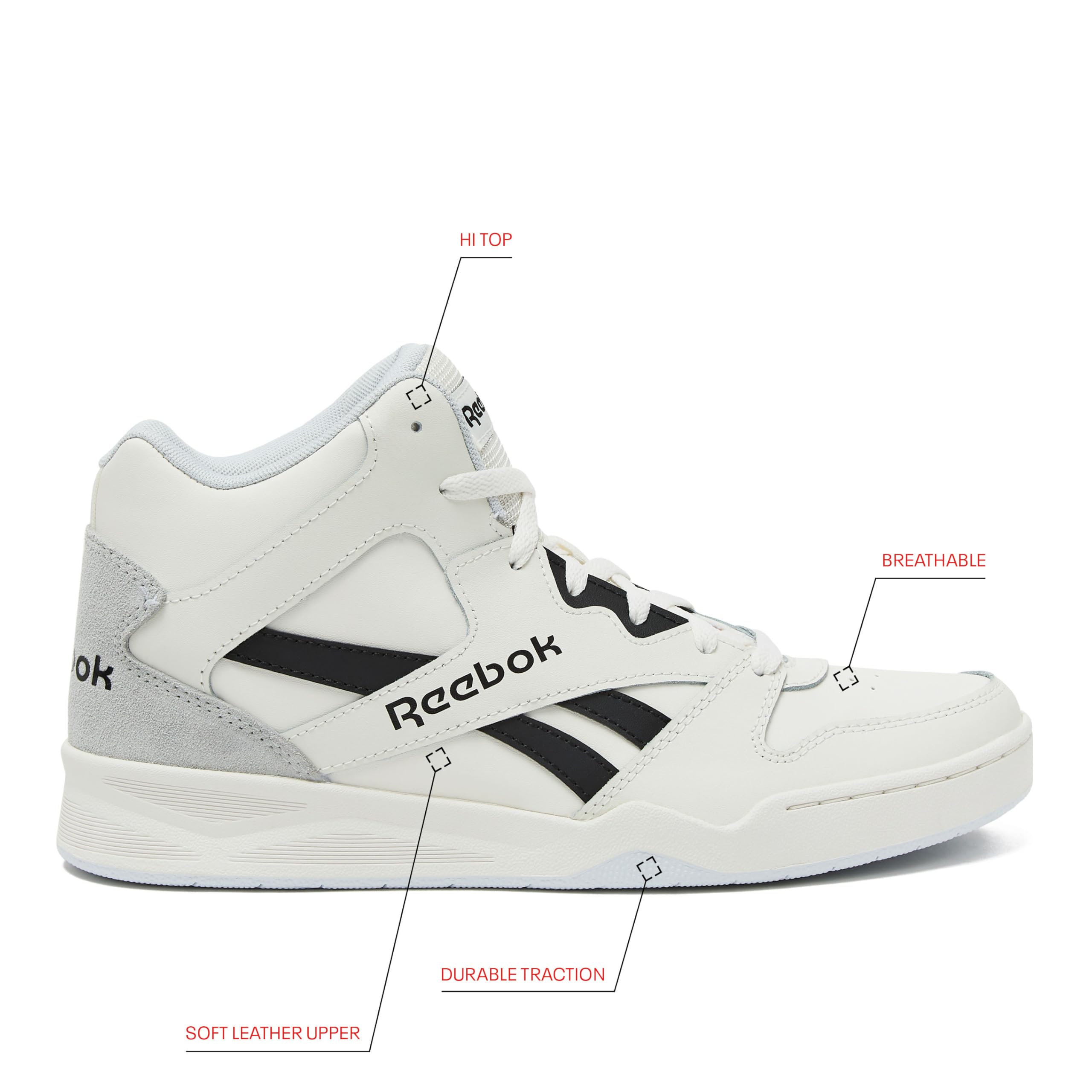 Description The Reebok Royal BB4500 Hi 2 hightop sneakers for men offer timeless style and extra comfort on and off the court. Whether you’re searching for retro high tops men can wear every day, cool and classic men's high top sneakers as a wardrobe staple, or supportive mens basketball shoes high tops built for performance, this pair has you covered. These are the high top shoes men need for an effortless look that’s always on trend. A durable blend of leather and mesh delivers structure, breathability, and long-lasting wear, while the high-cut design adds ankle stability and unmistakable court-inspired attitude. The EVA midsole and Ortholite insole offers lightweight cushioning that softens every step, and the high-abrasion rubber outsole gives you reliable traction whether you’re on the court, in the gym, or out on the street. Available in mens shoes size 7-15 in medium and extra wide widths.