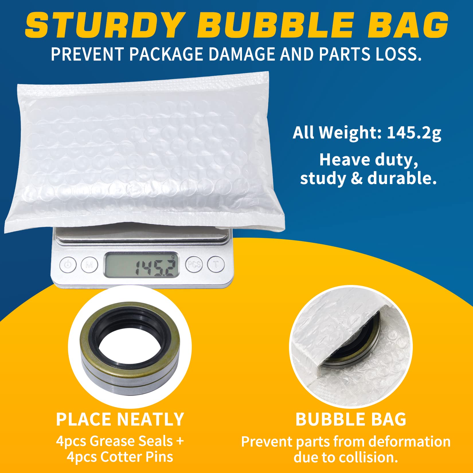 【STURDY PACKAGING】- The trailer bearing grease seals are packed in a sturdy bubble bag. All parts are placed neatly. The products are protected as much as possible during transportation to prevent deformation and wear.