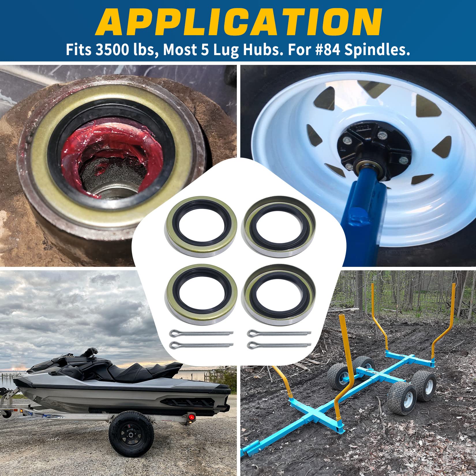 【GREAT VALUE PACK】- The trailer hub grease seals kit include 8Pcs parts: 4Pcs Grease Seals, 4Pcs Cotter Pins. Value-for-money sets! Meet the need for multiple repairs at a tenth of the price of buying locally.