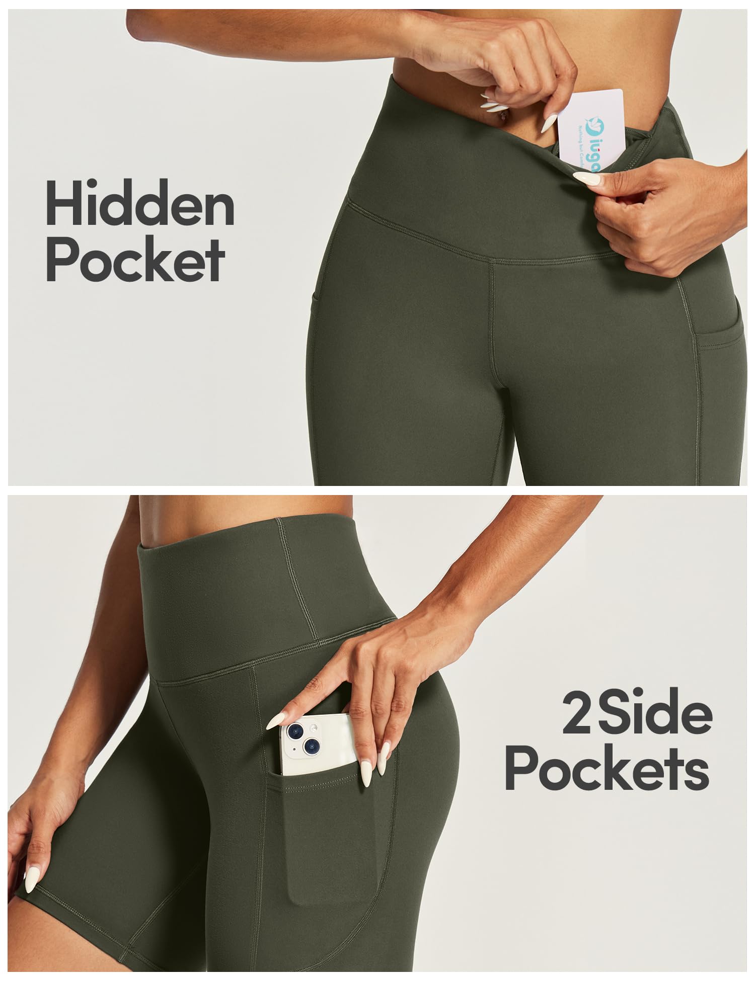 Being Hands-Free is Everything. IUGA Athletic Shorts feature 2 side pockets and 1 inner pocket in the waistband, allowing you to easily stash your phone or keys without weighing the shorts down. Now, no more worry about exercising with something in your hands. The IUGA women's yoga shorts will be your ideal choice for workouts