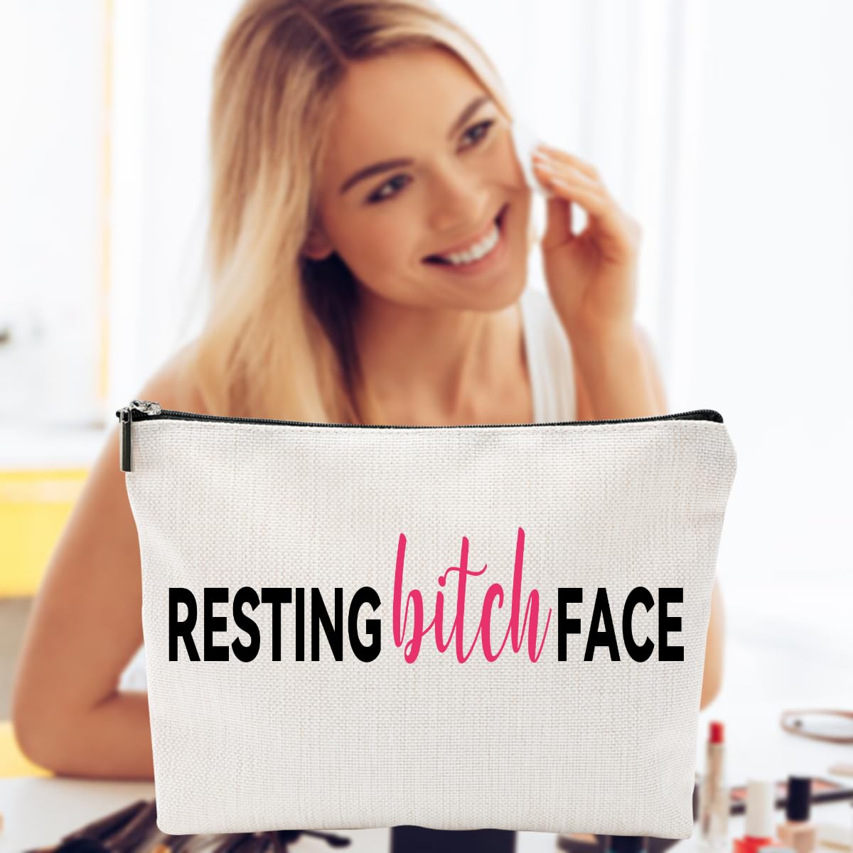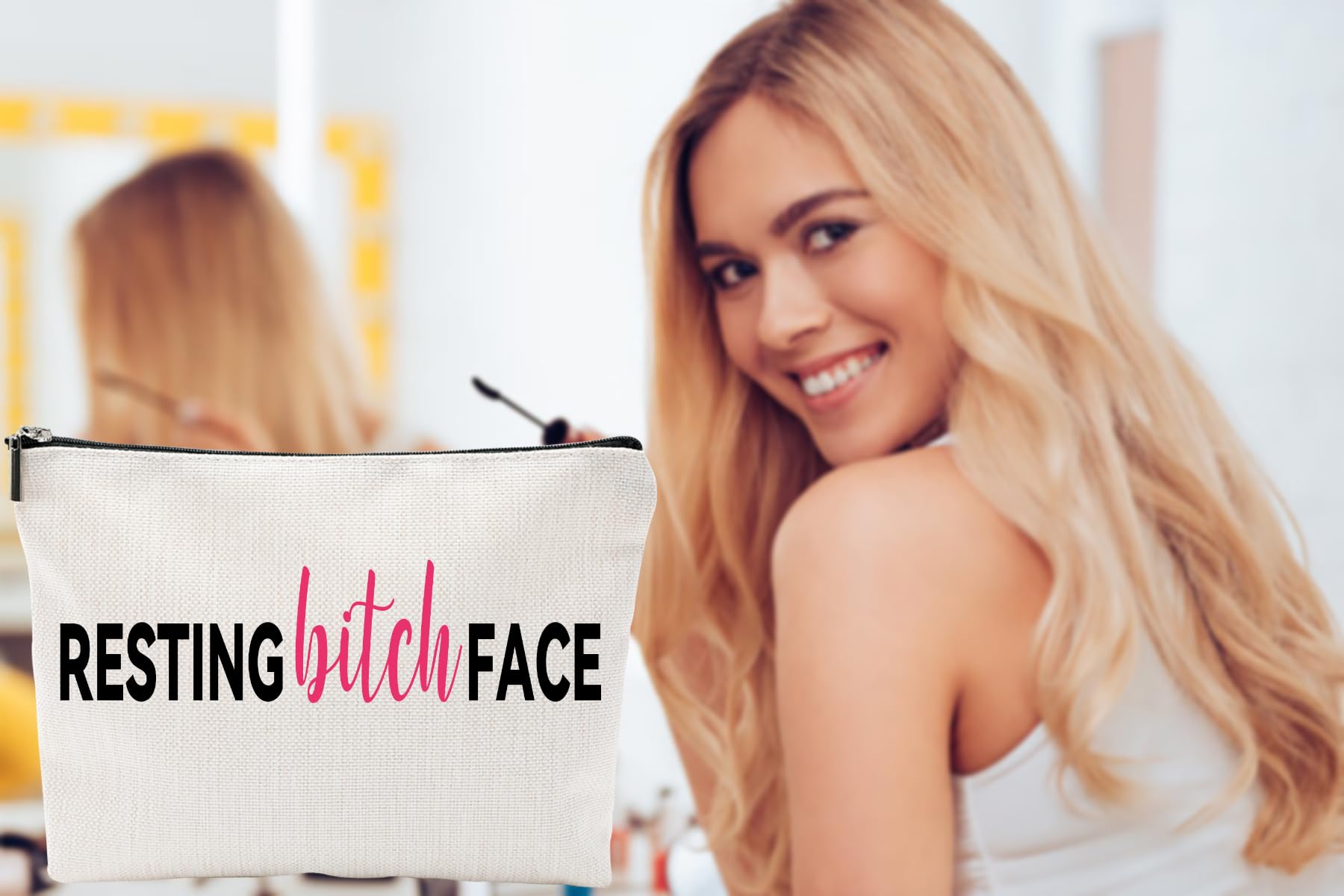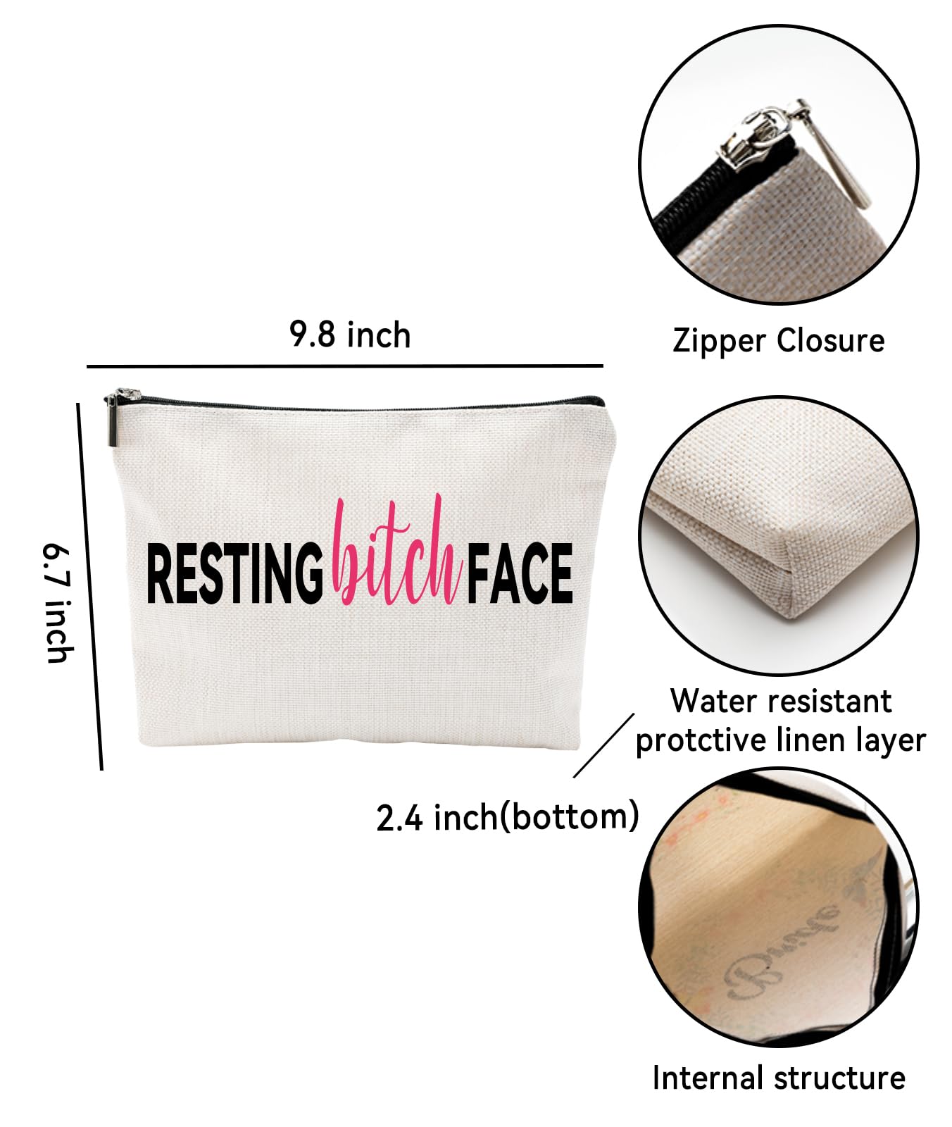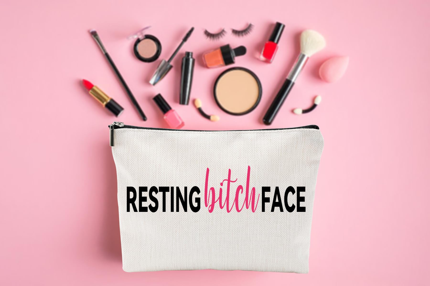 Chic & Playful Design – This trendy makeup bag features "Resting Bit*h Face" in an elegant mix of bold and script fonts, making it stylish and sassy.