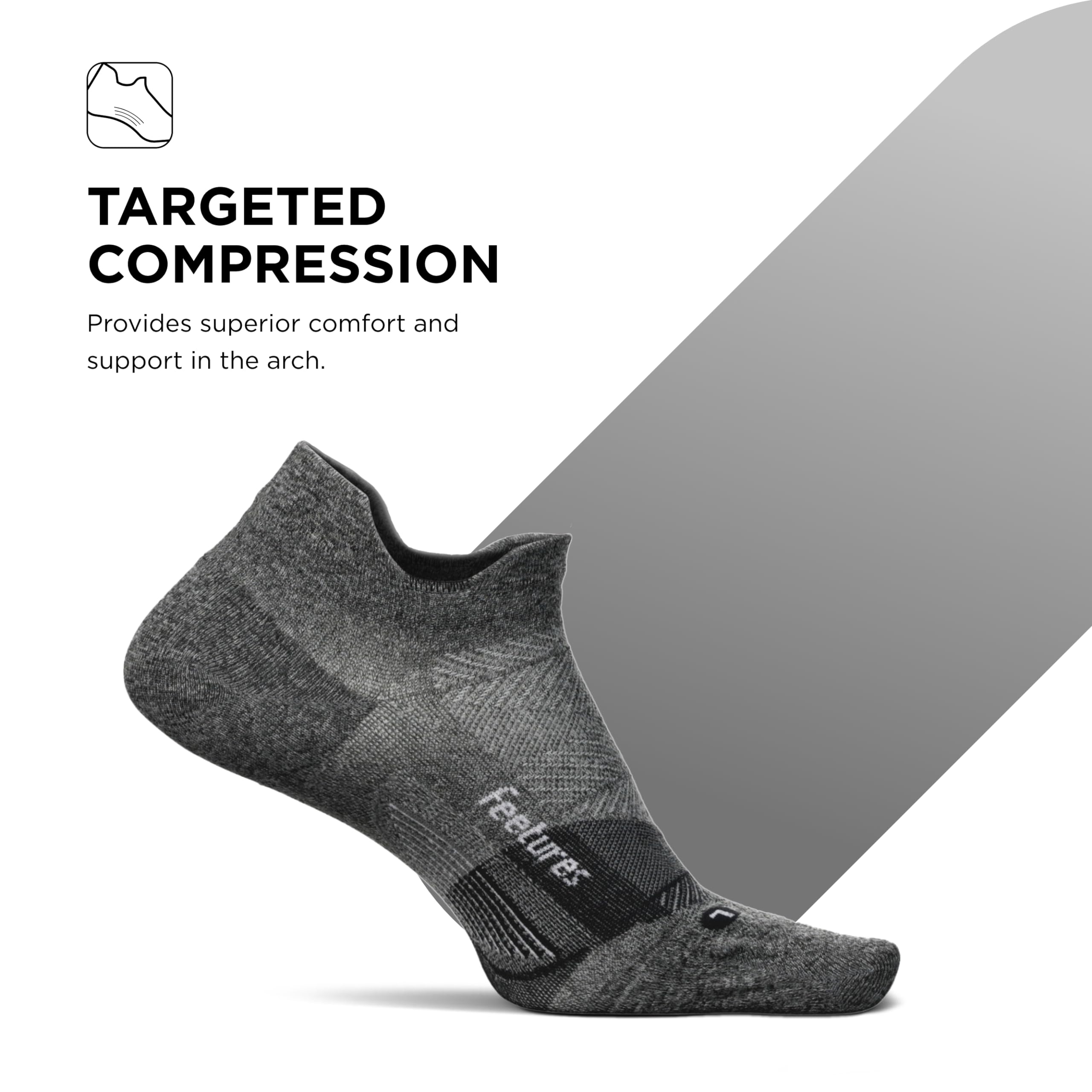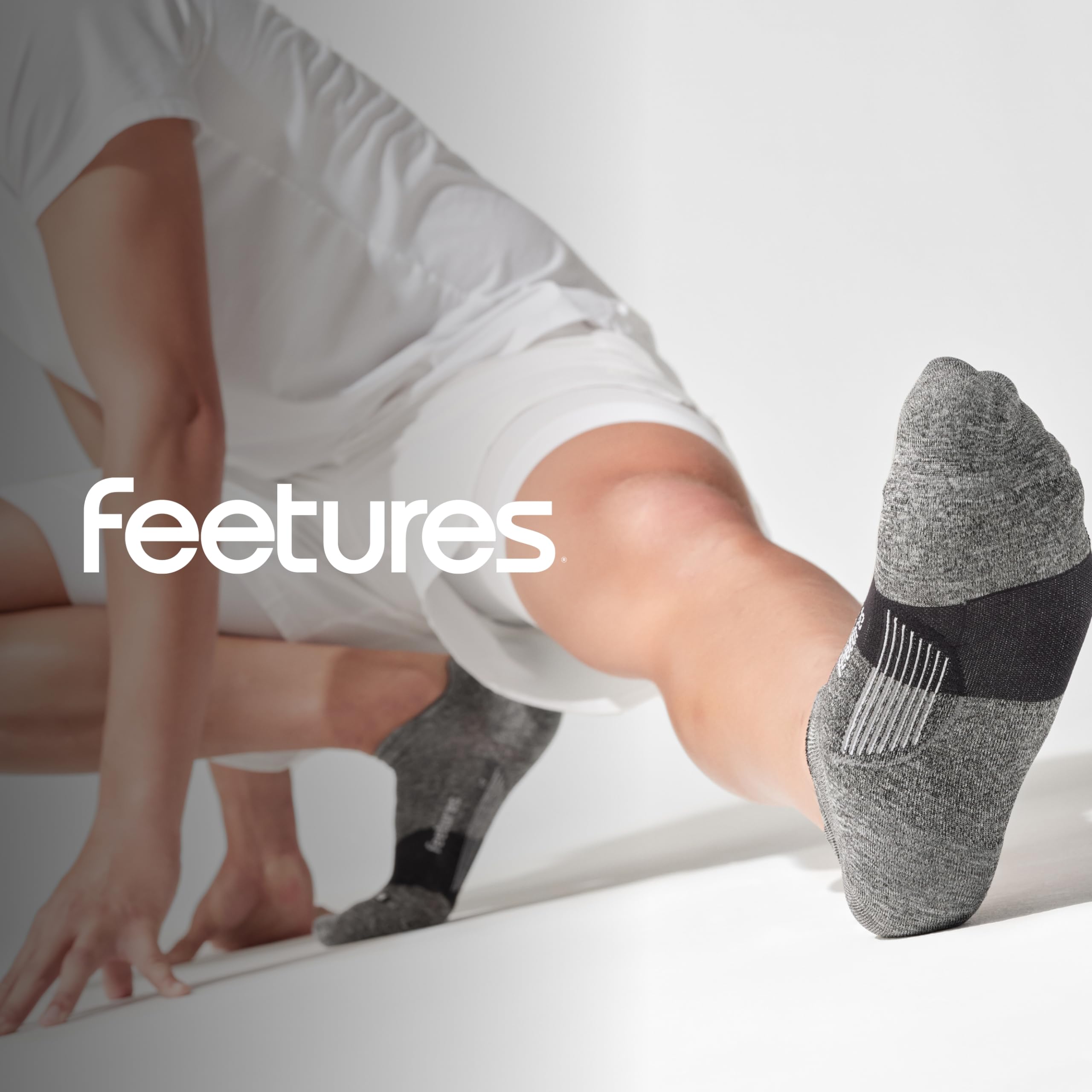 Sports Sock: These Feetures socks are engineered with Targeted Compression and anatomical design that conform to the left and right structure of the foot providing a custom-like fit and reduced risk of blisters