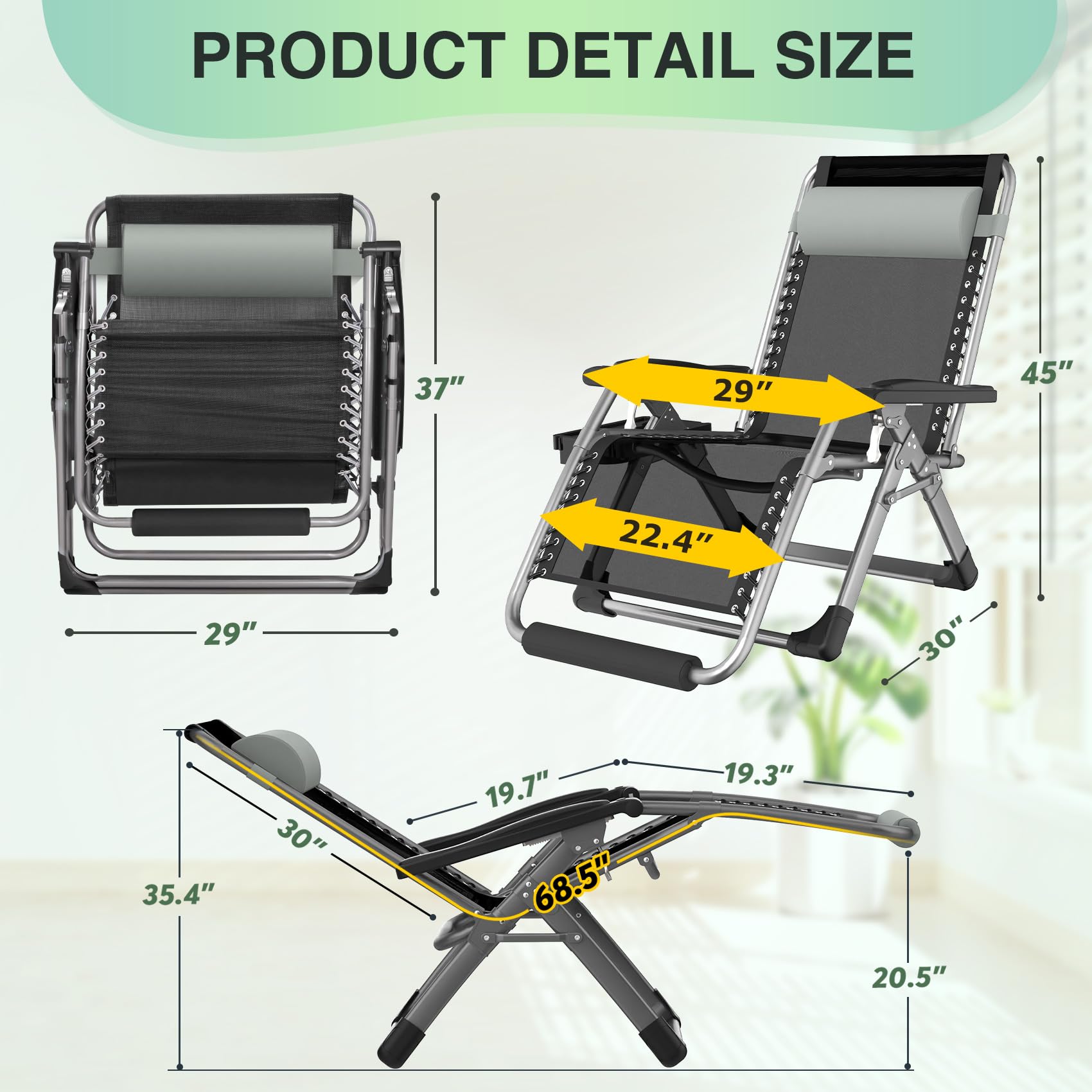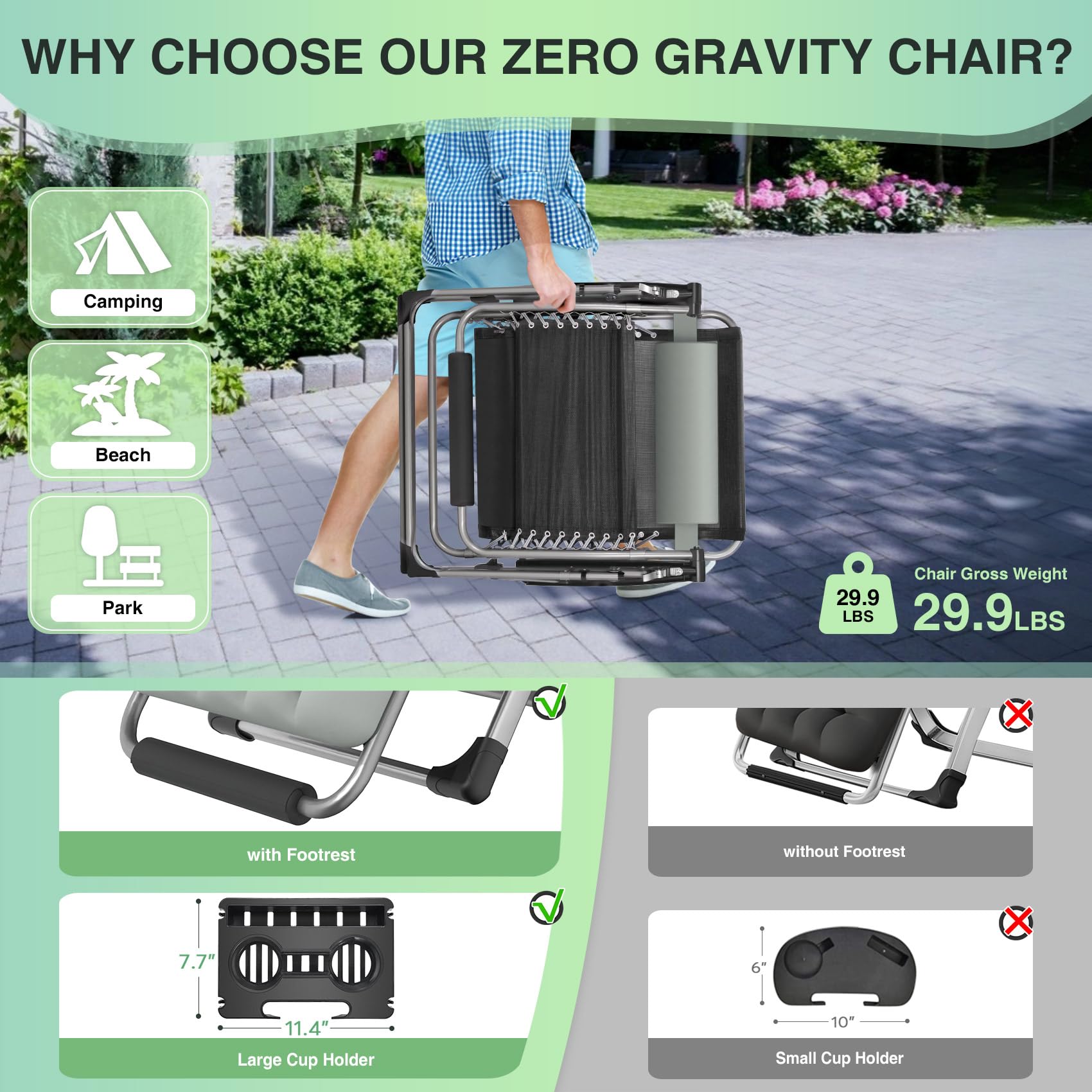 【Portable and Versatile】This foldable zero gravity chairs need no assembly and can be folded and unfolded in seconds. The lightweight folding design is easy to carry, suitable for yards, lawns, terraces, decks, gardens, courtyards, balconies, pools and beaches