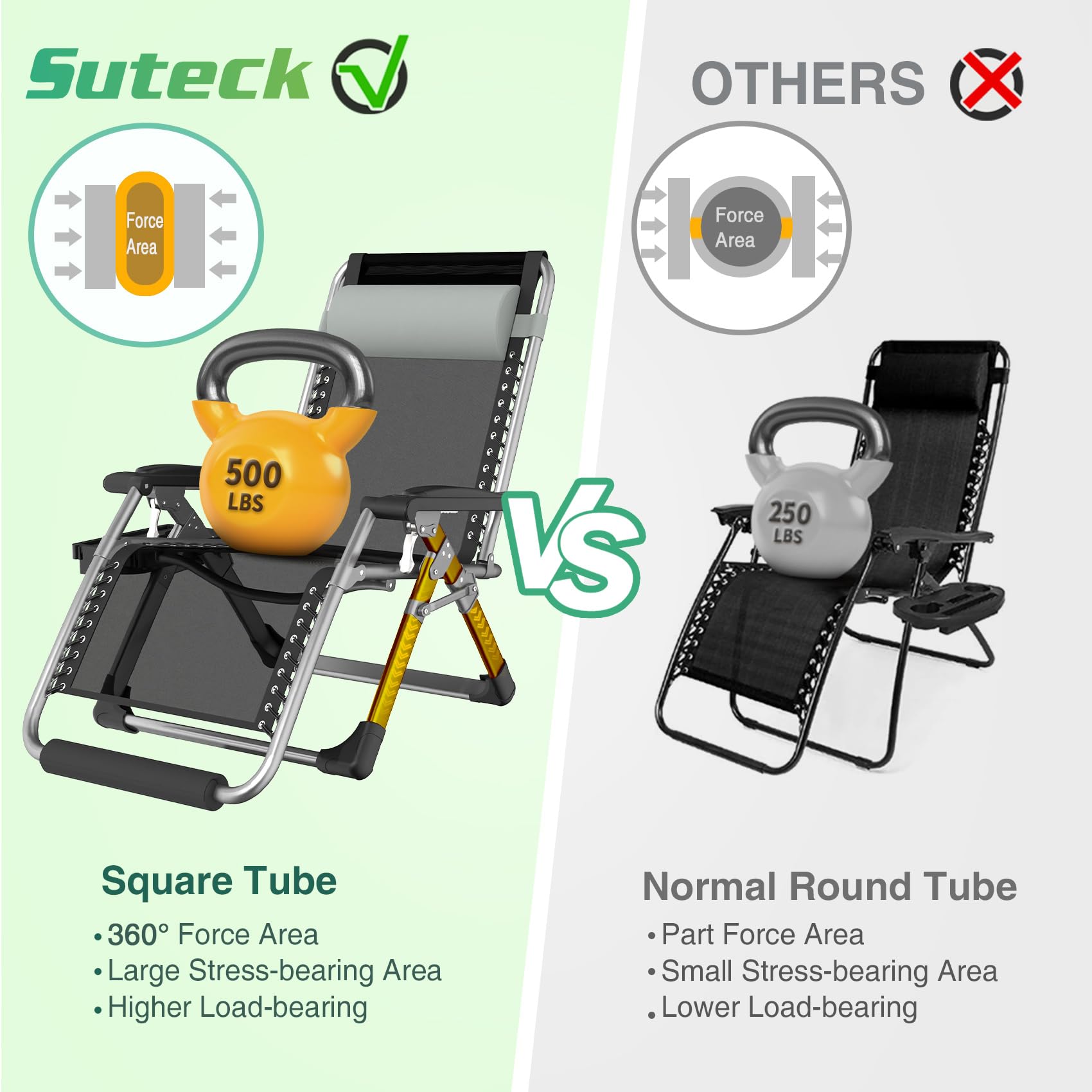 【More Sturdy and Durable】Upgraded zero gravity chair can bear 500 pounds. 40mm(1.6inch) Thickened steel pipe can make the chair not shake and more stable, improve the bearing capacity and durability of the patio chair. Upgrade texlin fabric, double elastic bands,breathable mesh and removable soft cushions add extra comfort