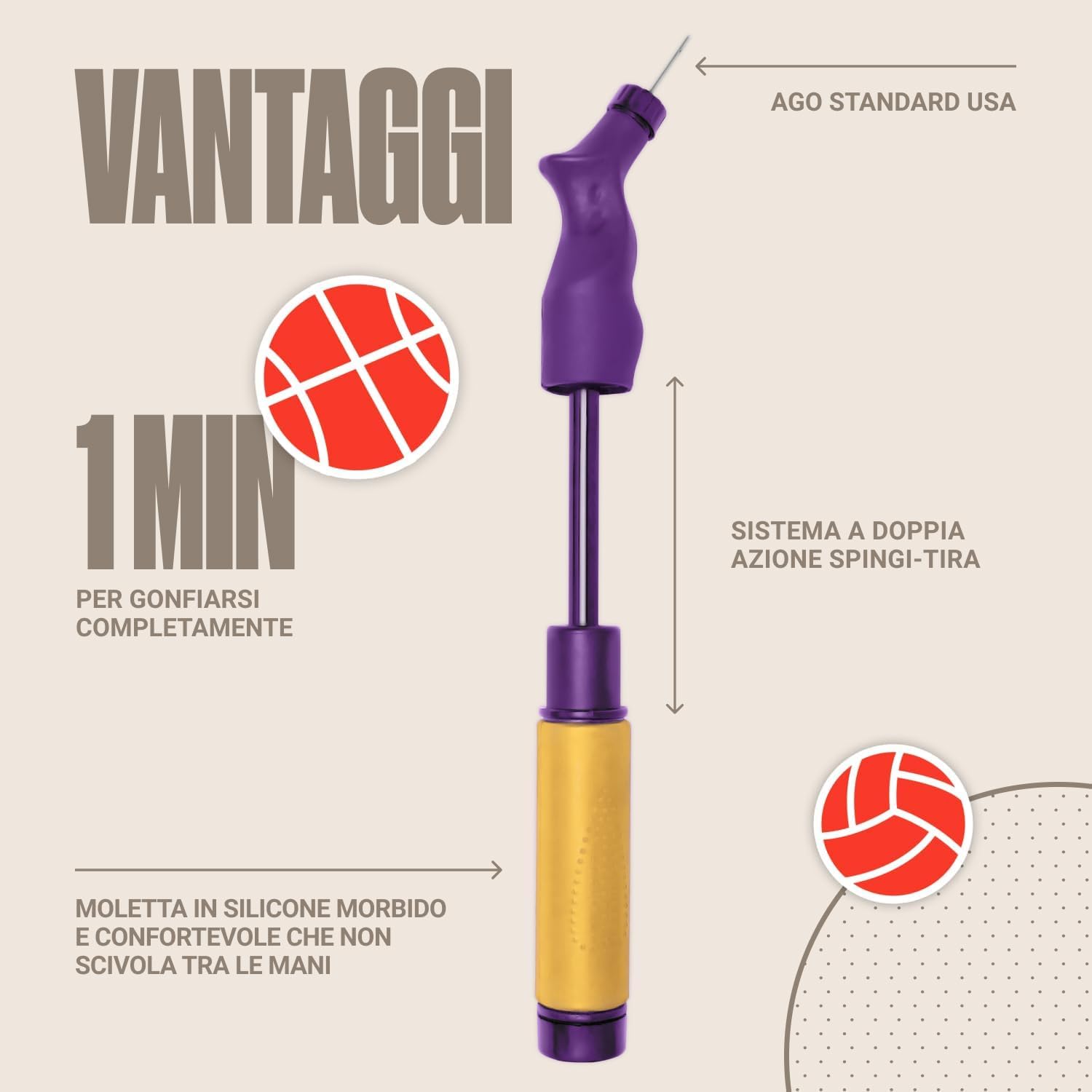 Ball Pump with Ergonomic Design – Made for your comfort with a soft mold that fits perfectly in your hand; Works best as volleyball pump, basketball pump, or soccer ball air pump