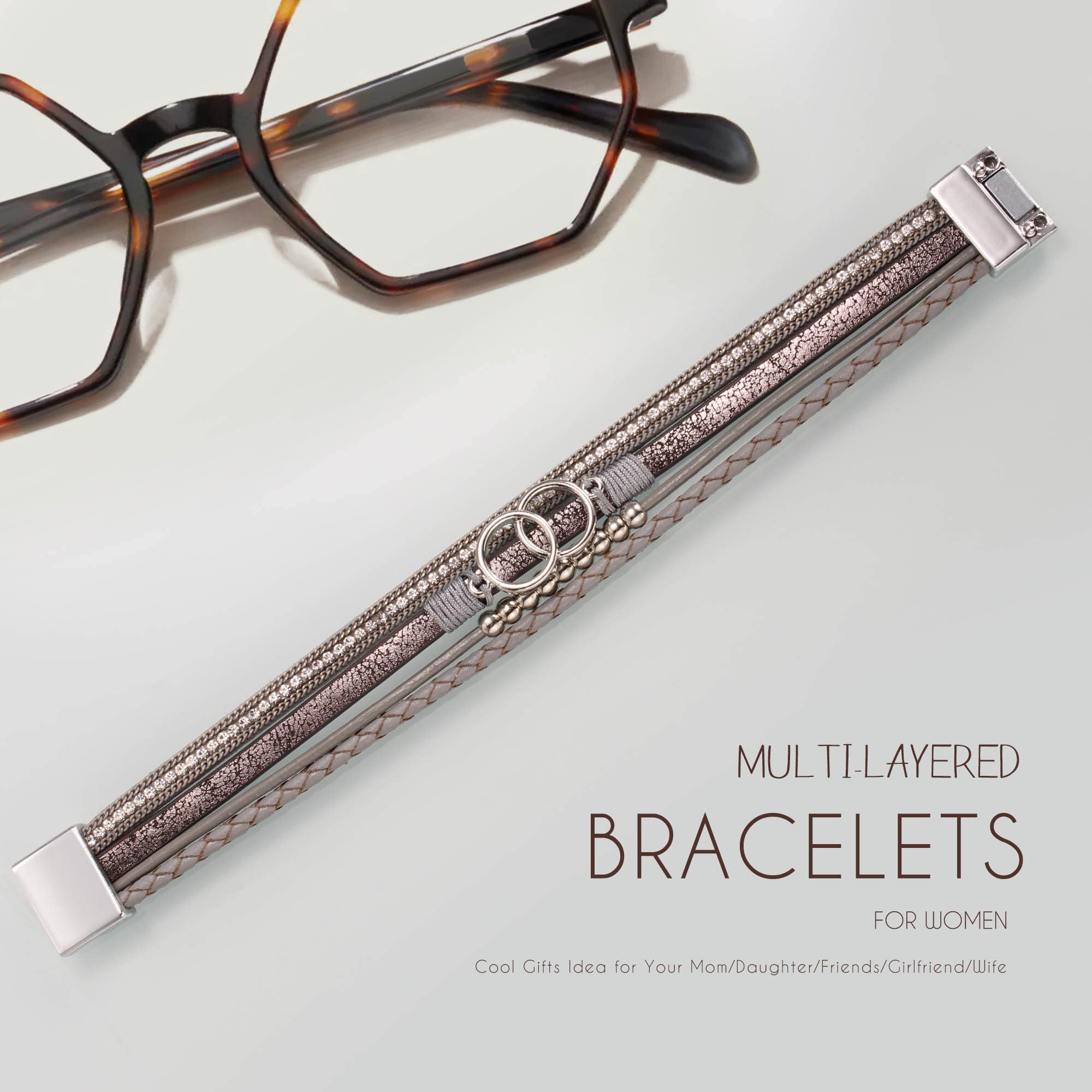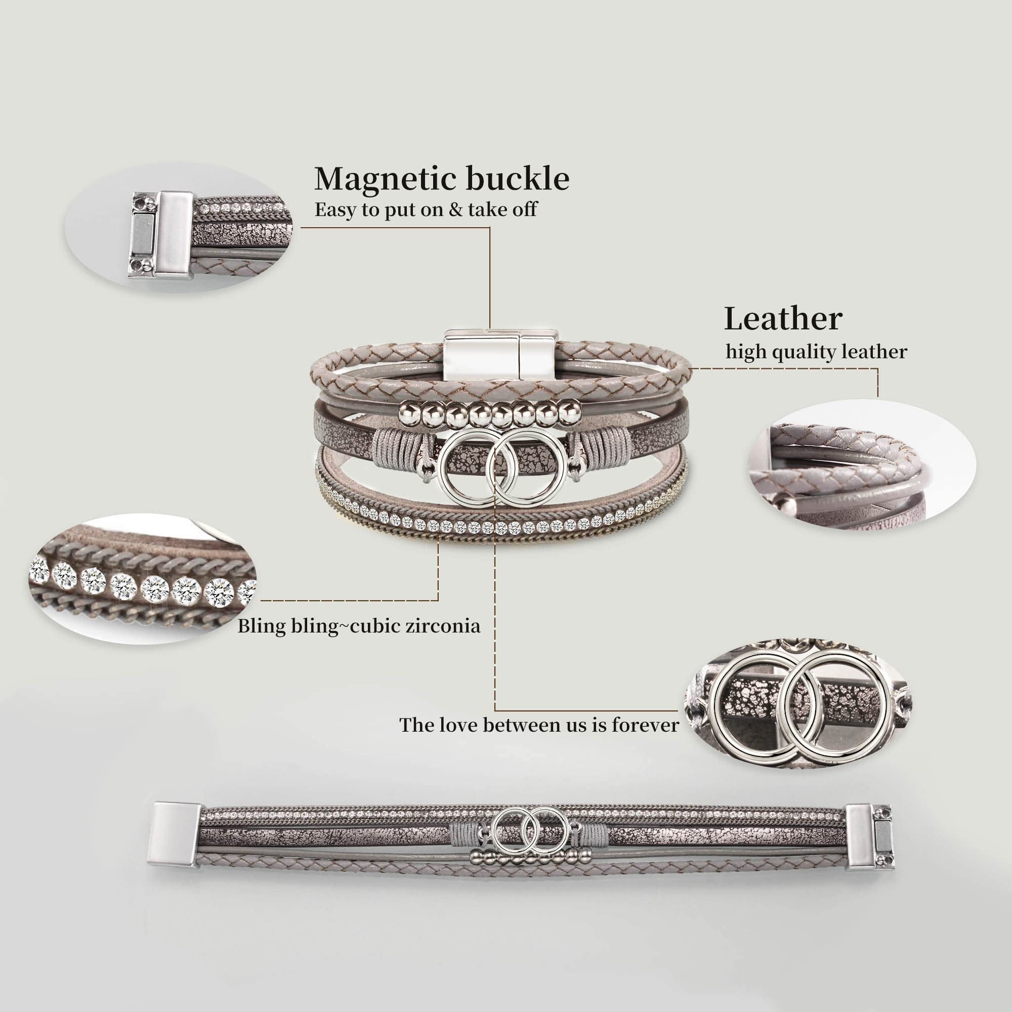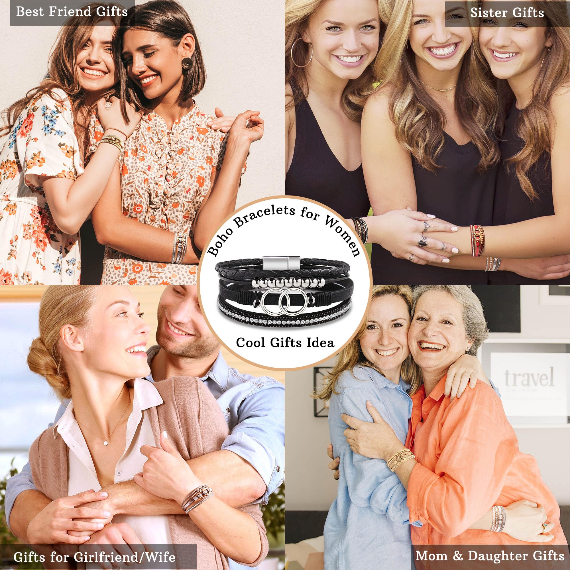 Bonus Daughter Gifts Material: The boho bracelets is made of leather, comfortable to wear. No fade. Easy to wear and take off with clasp. Get the eye-catching wrap bracelet for your daily outfit.