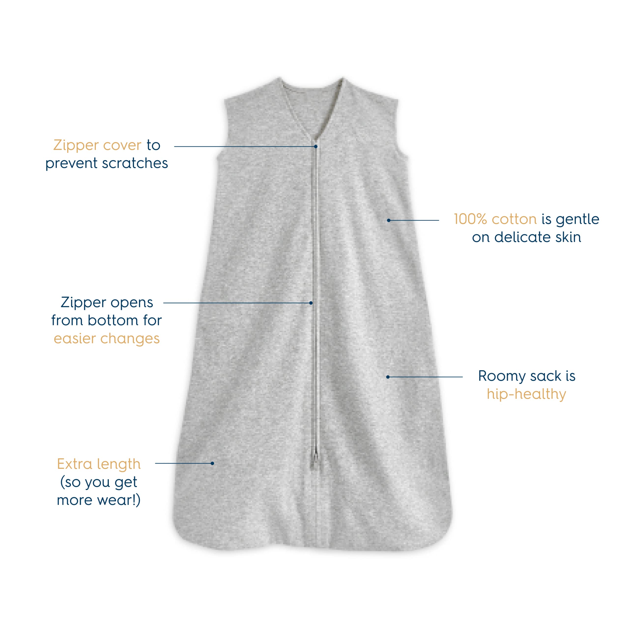 PREMIUM FABRIC FOR ULTIMATE COMFORT: Made from soft, breathable 100% cotton, this SleepSack is gentle on delicate skin, perfect for layering over regular sleepwear, and machine washable for easy care. TOG RATING 0.5 (room temperature 75°- 72°F): Ideal for hot summer nights or warmer climates, this lightweight option ensures breathability and keeps you cool and comfortable.