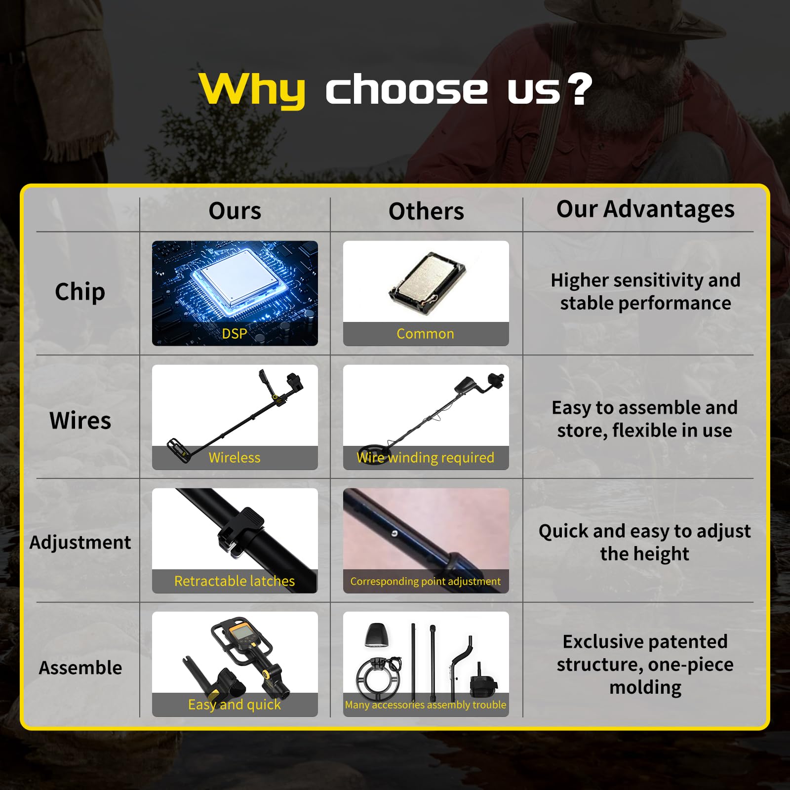 PRECISE METAL DETECTION-- With an advanced DSP chip, this gold and silver metal detector delivers high accuracy with 8 sensitivity levels and a detection depth of 4 to 10 inches. It is ideal for locating valuable metals in various ground conditions.Heads-up:For accurate detection, use outdoors. Indoor reinforced concrete can interfere.