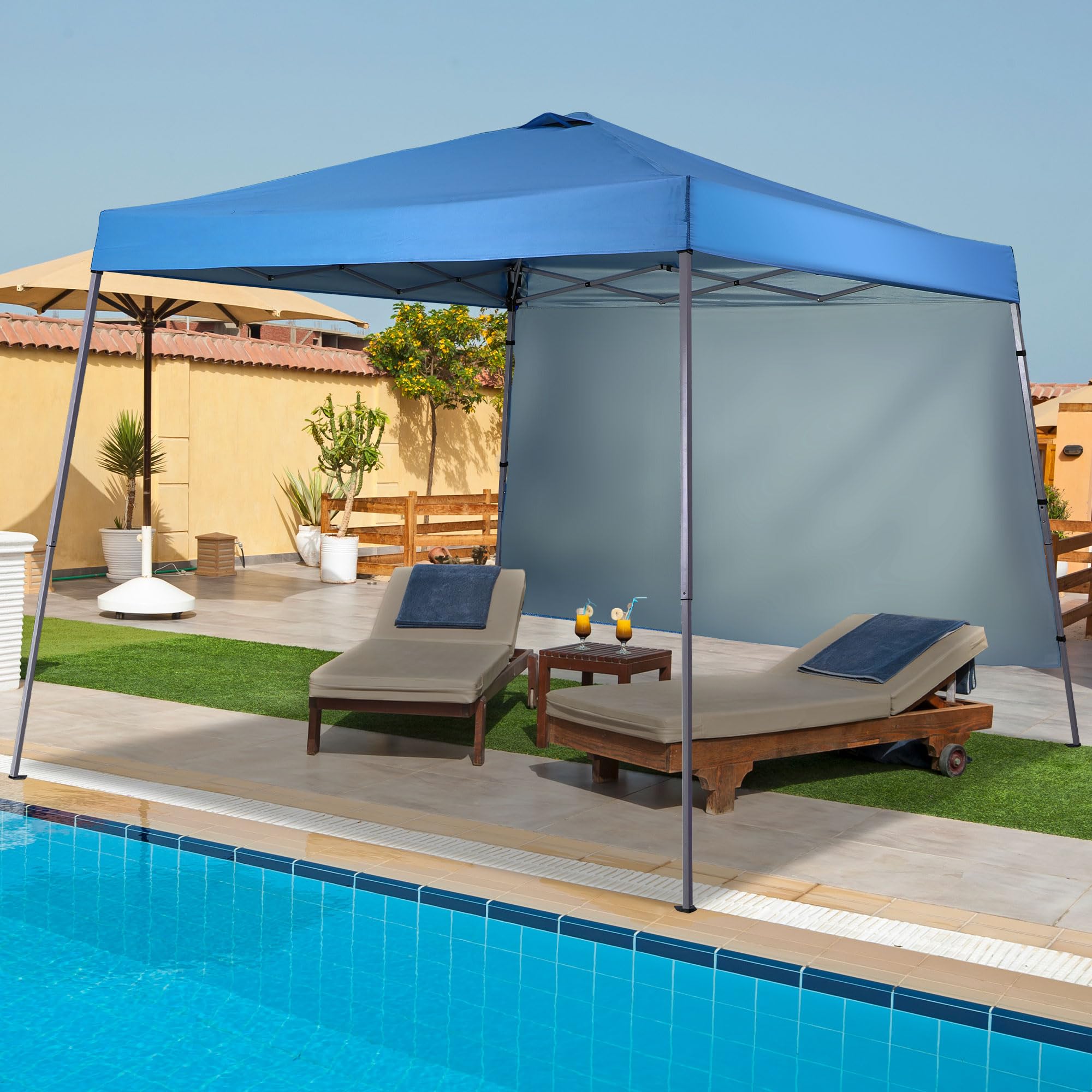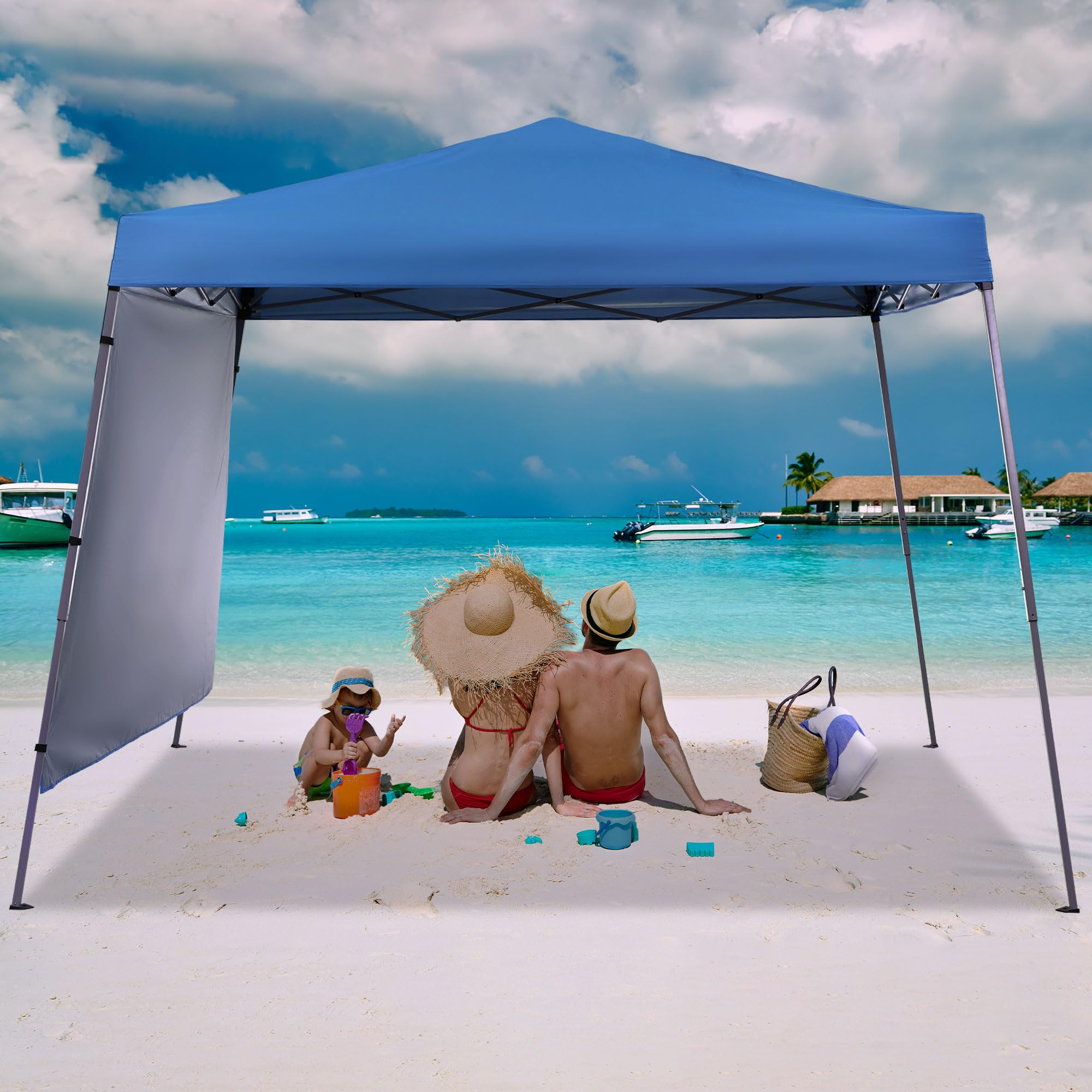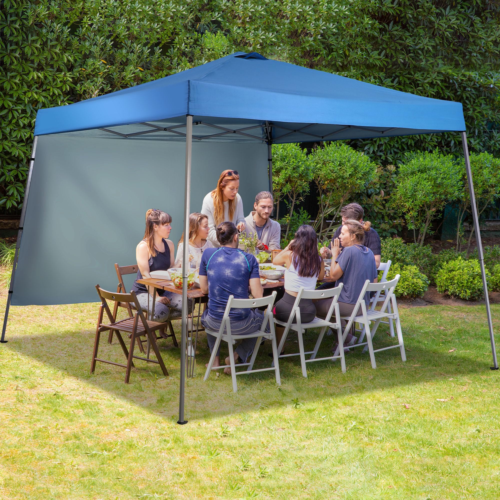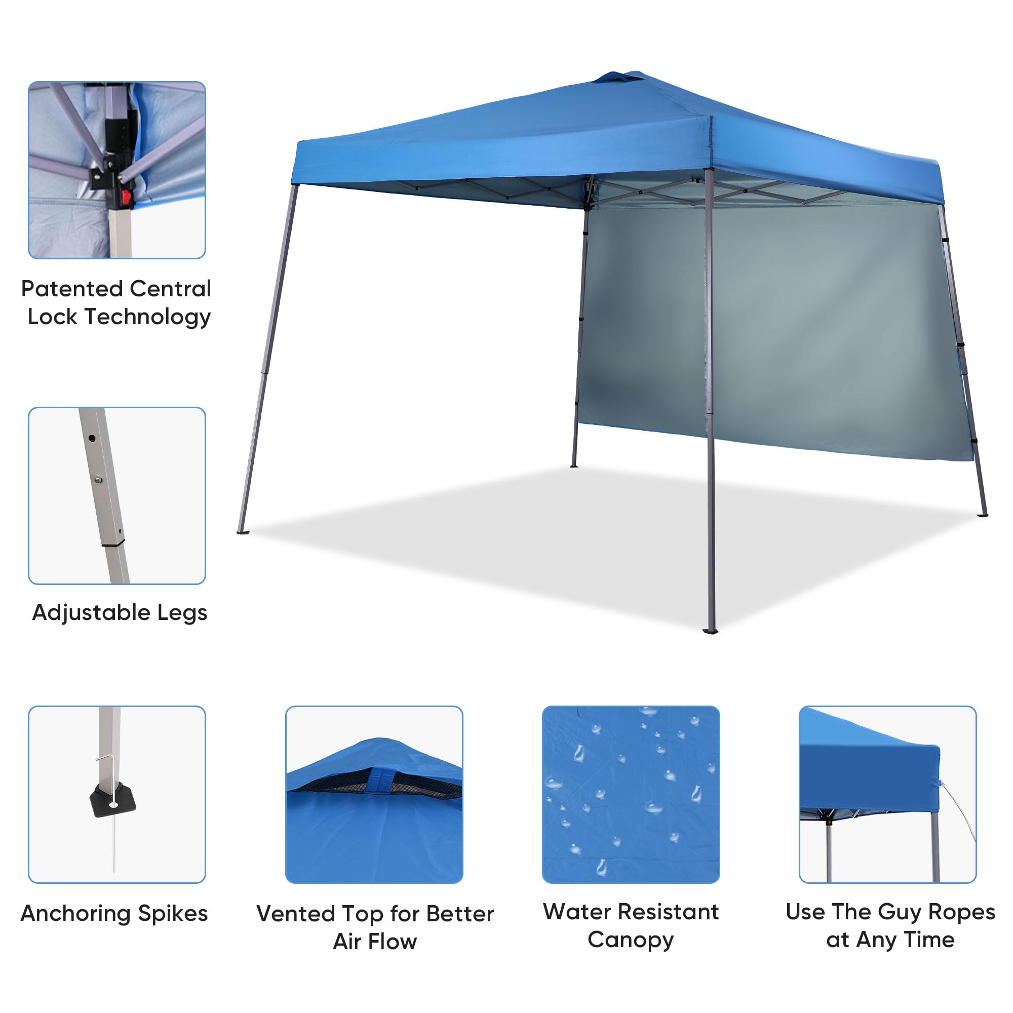 [Extra Windproof Design]:This easy up canopy comes with a piece of fabric on the back to protect against wind and rain while maintaining good ventilation, bringing a better experience to your outdoor life.