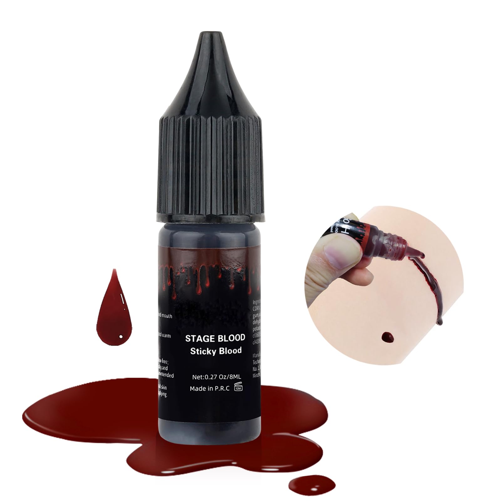 【Easy to Apply & Easy to Wash Off】BOBISUKA sticky fake blood comes in a portable 15ml pocket-sized bottle, with an attached applicator brush in the lid for easier & precise application. Apply directly onto wherever you want with the attached brush or use Q-tips and detail brush to create gory blood FX effects. Easily wash off the blood makeup with soap and warm water. If slight stains remains, massaging the soap in circulations will help clean thoroughly. 【Please be aware that product may stain clothes.】