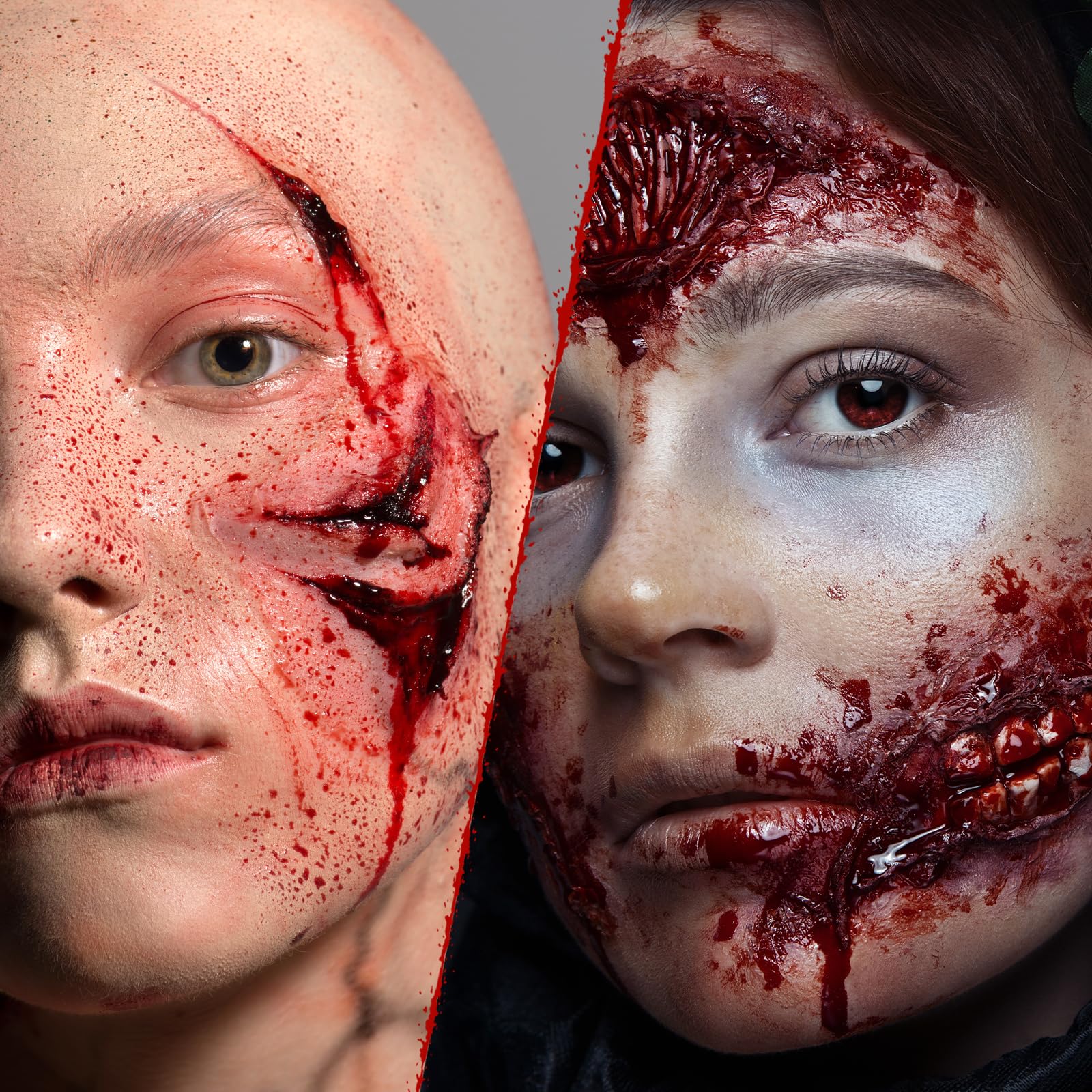 【Skin-Friendly & Versatile Fake Blood】BOBISUKA edible & washable stage blood is an ideal fake blood when you want to have a convincing fresh blood effect - just like the injuries just occur. It can be used on face, body, props or clothes for Halloween special effects makeup or daily pranking. You can use it to create abrasions, scrapes, broken nose, scabs, scratches or trickling blood drool, slit throat FX. Moreover, combine with scar wax, liquid latex or 3D gel to create zombie rotting flesh, cuts, gashes, bites, slit wrist wounds or any broken skin FX.