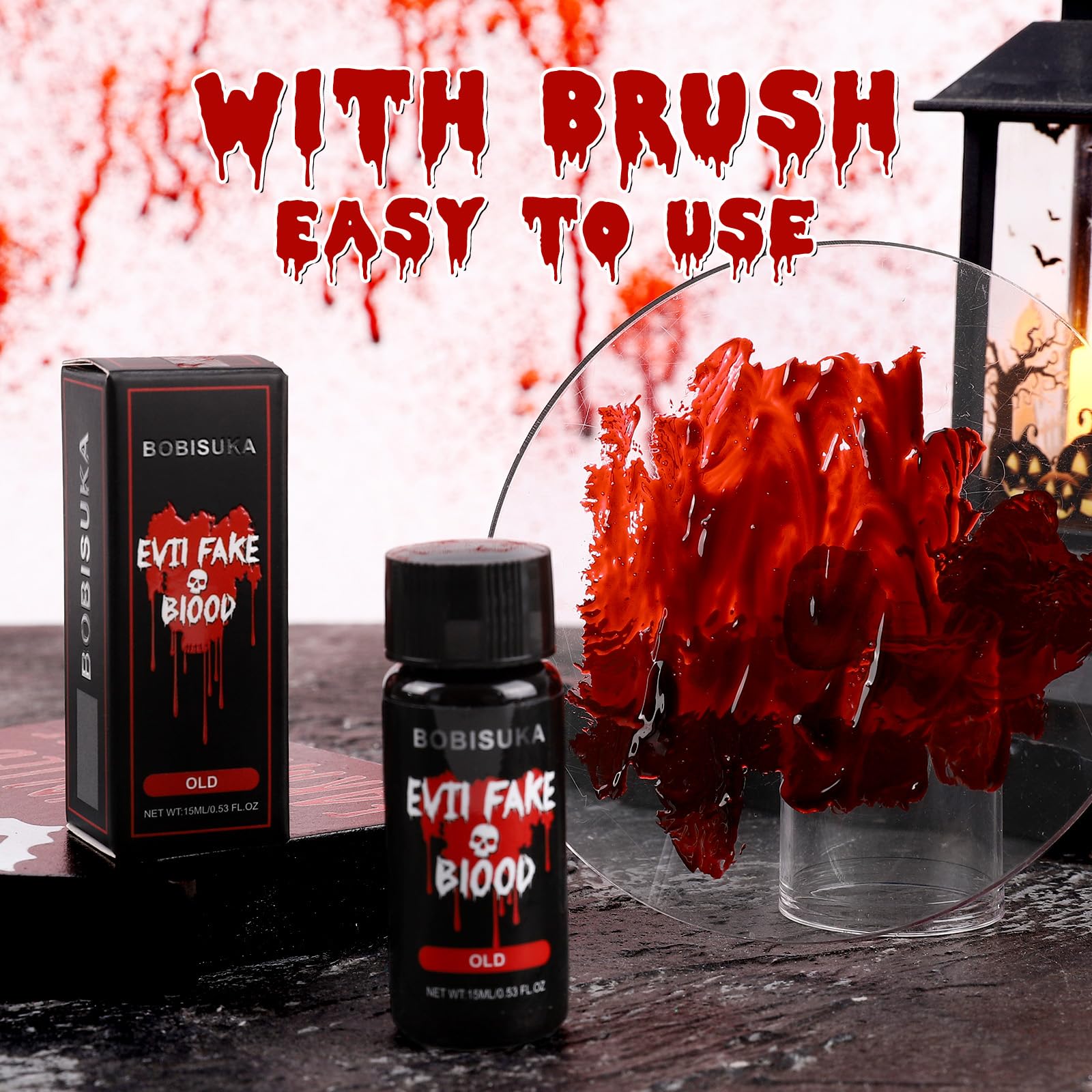 【Halloween Realistic Fake Blood for Gory SFX Makeup】BOBISUKA syrup-based fake blood is perfect for enhancing any Halloween gory special FX makeup looks, such as classic vampire makeup, fierce werewolf makeup, bloody zombie makeup, demonic makeup, evil clown/Joker makeup, horrifying skeleton/ghost/ghoul makeup or any other spooky themed character makeup. Ideal for cosplay, costume, horror themed parties, haunted house, film, stage & theatre.