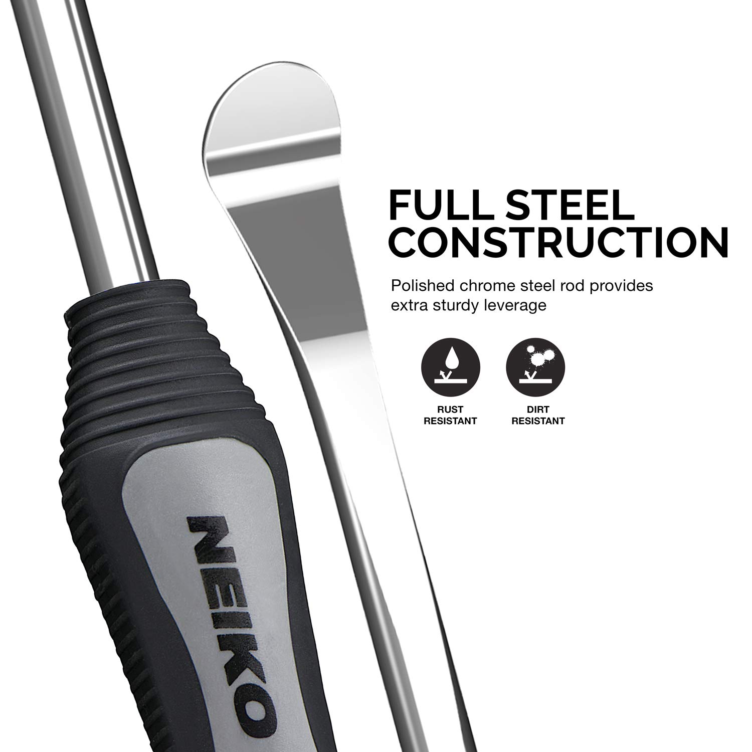 FIRM HANDLE GRIP: Each handle has a contoured rubber grip that helps prevent fatigue to your hands during prolonged use. When you need to change a flat tire, these car and motorcycle tire spoons can help get the job done.