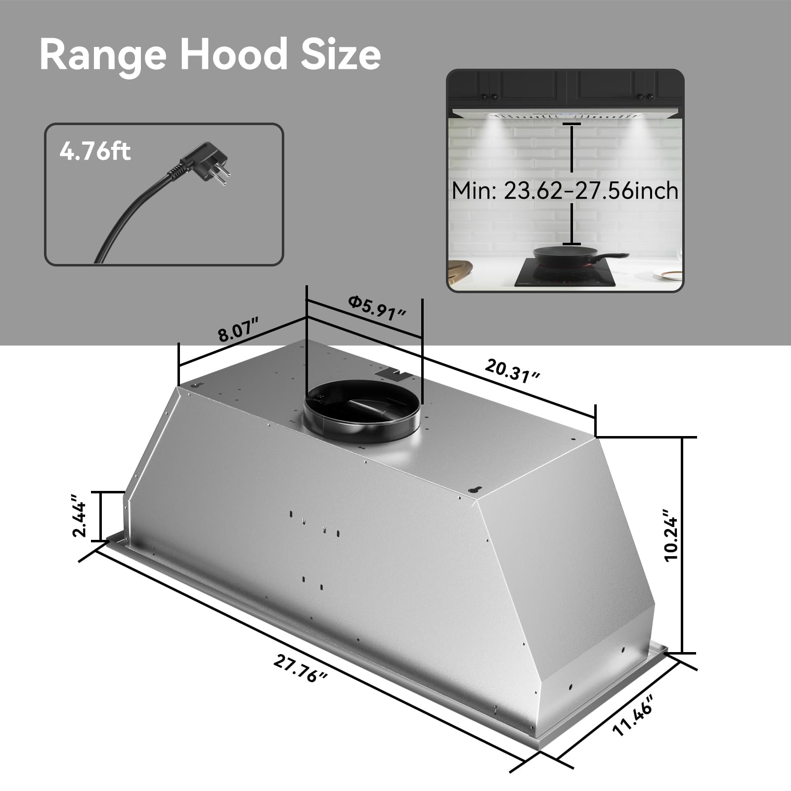 【Complete Professional Package】Everything needed for installation included: 2 dishwasher-safe metal filters for grease and two charcoal filters for ductless mode.The hermitlux 30 inch insert range hood provide a clear manual and 1-year warranty, setup is straightforward.