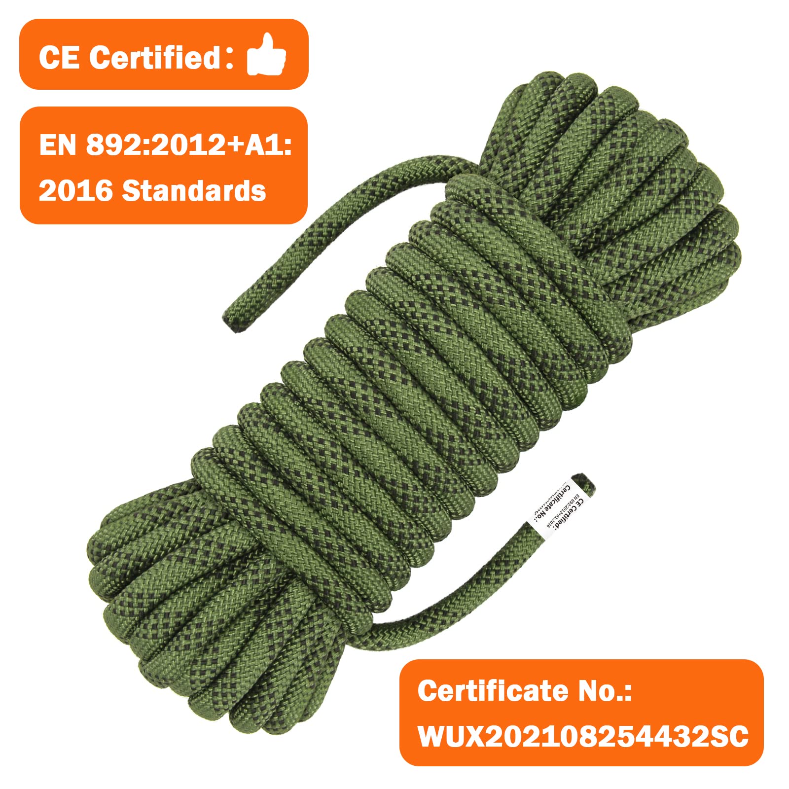 CE Certified: Our static climbing rope meets the CE Certification of EN 892: 2012+A2:2021 Standards (Certificate No.: WUX202310235416SC), ensuring quality control. Bright color ensure great visibility in all weather.