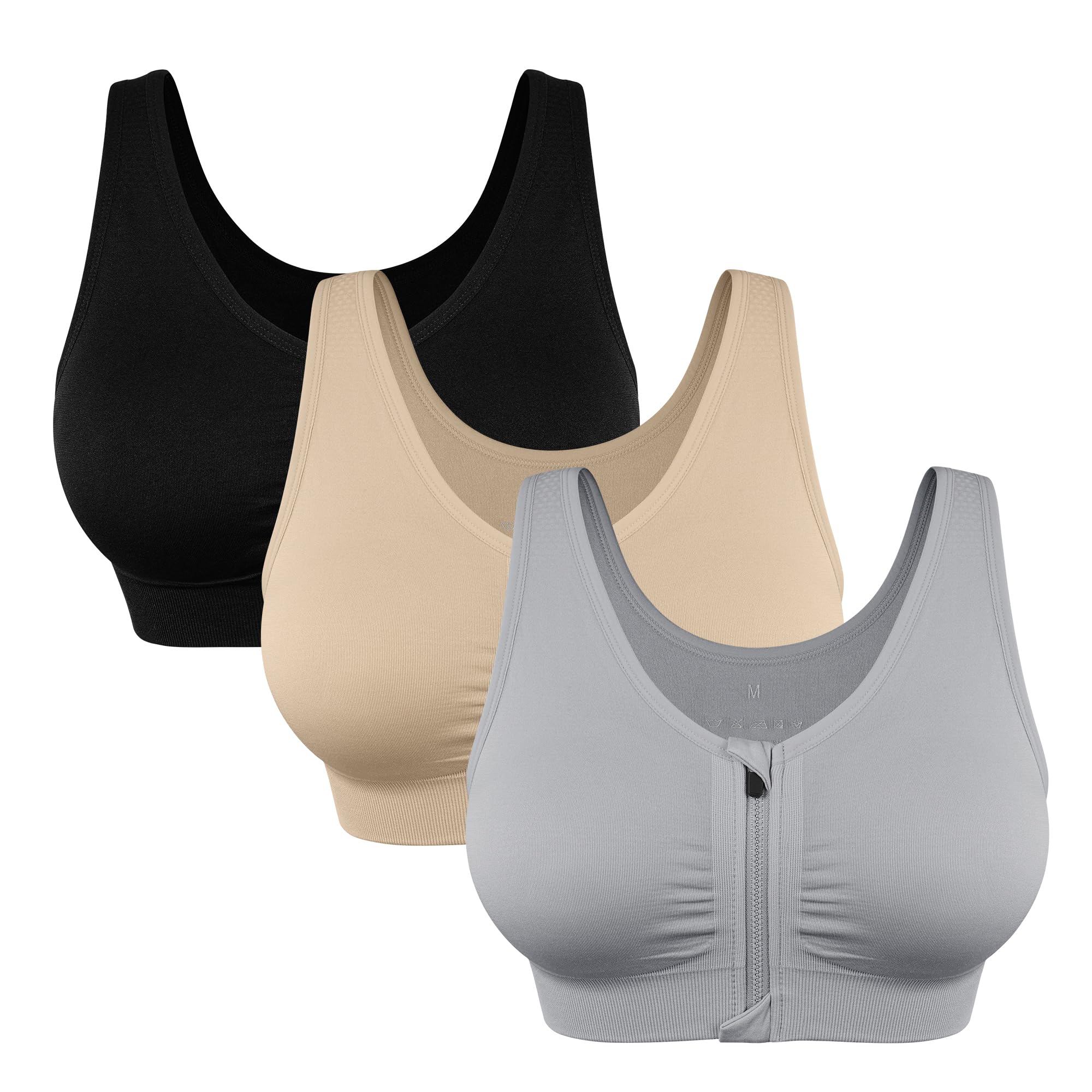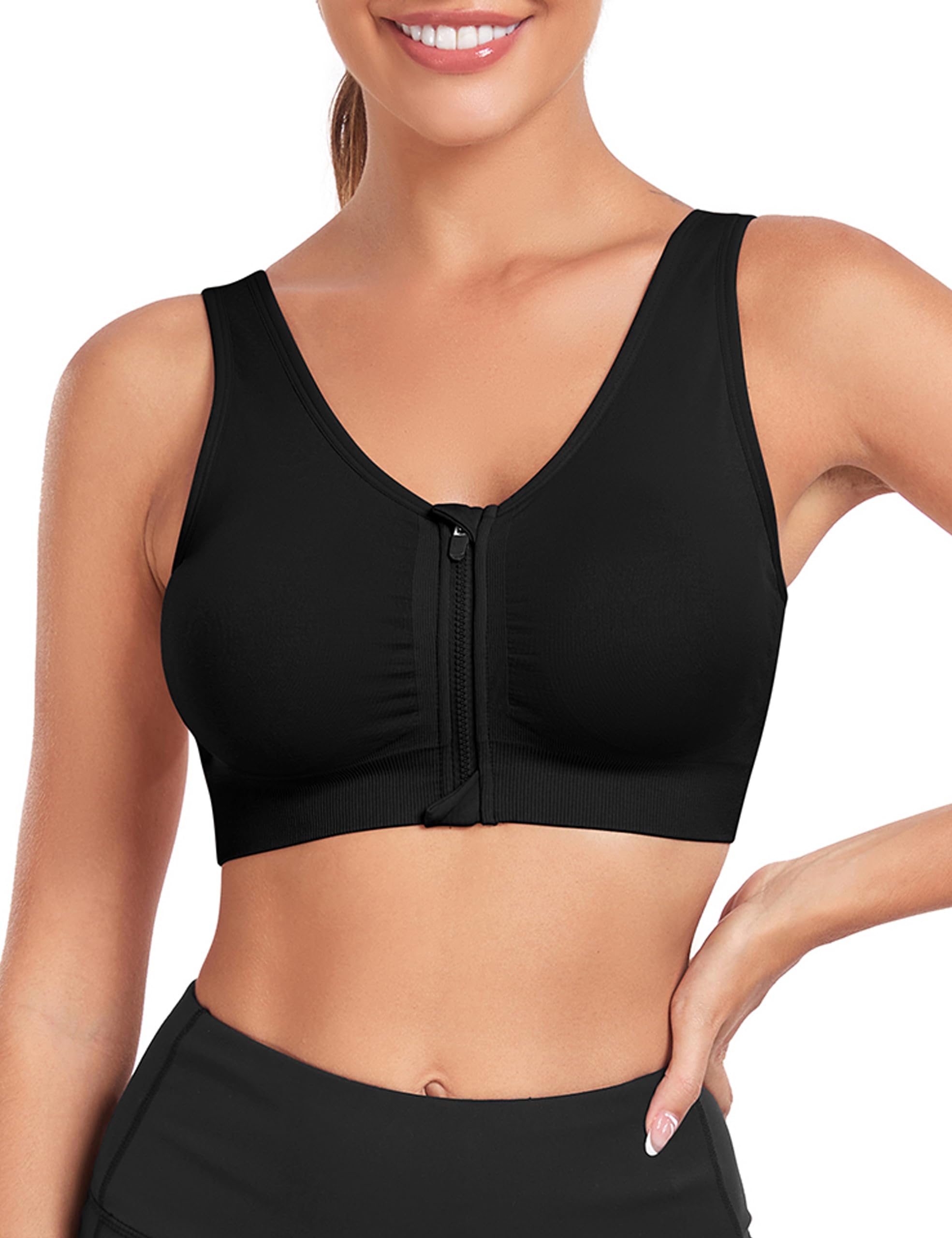 Front zipper closure-Easy to put on and take off with zipper front closure. Anti slide Zipper protect from sliding down when doing exercise. Protective layer of clothe covers the zipper on the inside to prevent scratching your skin