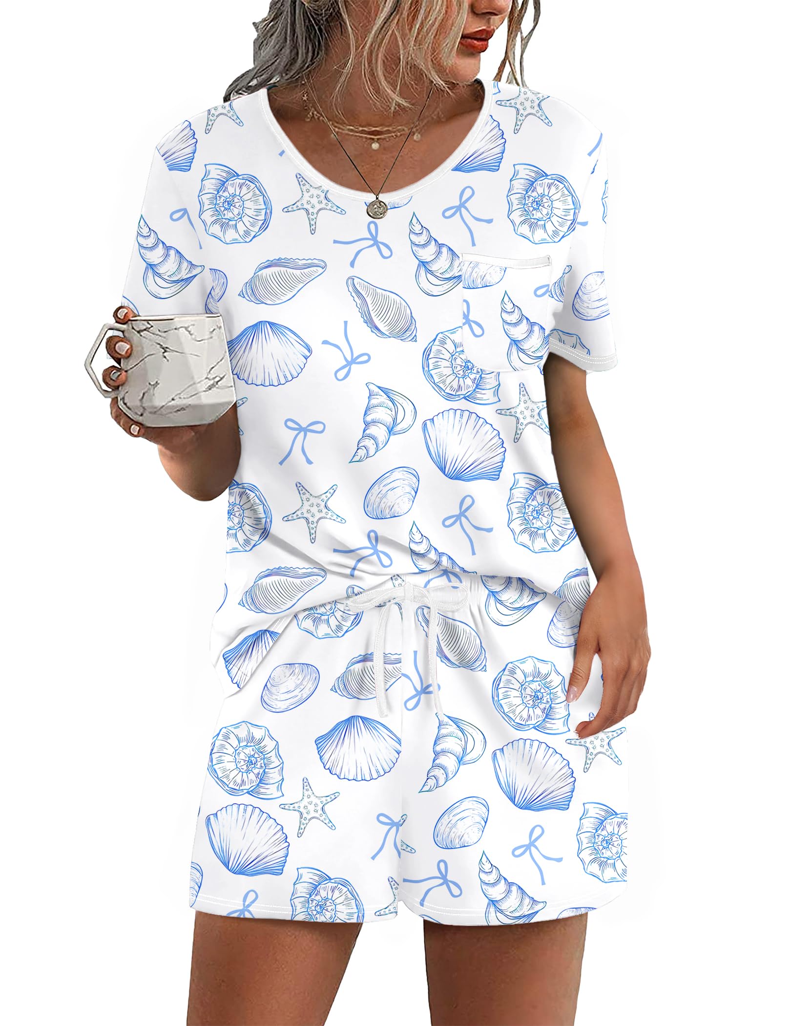 Short Sleeve Tops: Sleep shirt features round collar and chest pockets. Classic and convenient designs make this pjs sets more stylish and unique. Great nightwear, loungerwear that feels incredibly comfy and keeps you cool during hot nights