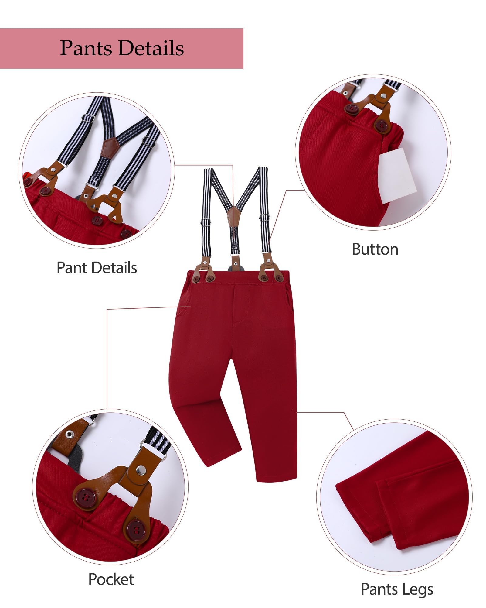 Design: Toddler boy dress clothes, classic color matching detachable bowtie and suspender pants. You'll never worry about how to match your cute boy!