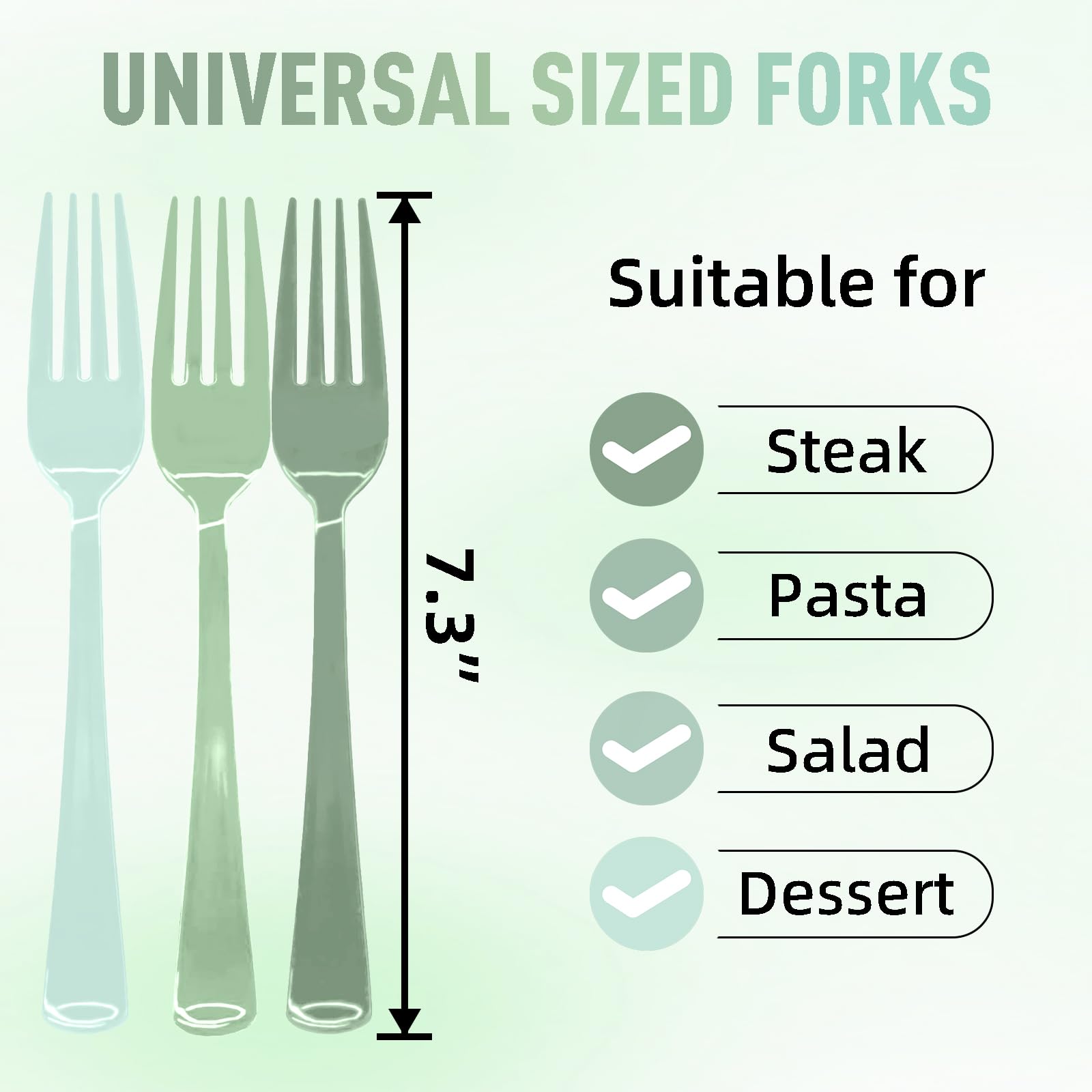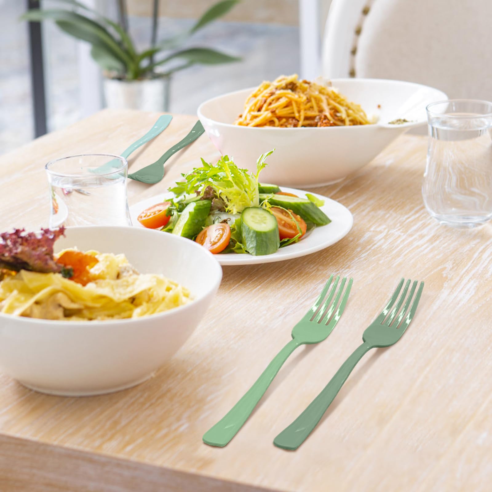 【Don't Worry About Quality】:These sage green plastic forks are made of high quality plastic, strong and durable, hard to break. The surface is polished, safer to contact with food. High-temperature resistant and suitable for all types of food, whether cutting meat or scooping soup, the sage green plastic forks meets customers' needs.