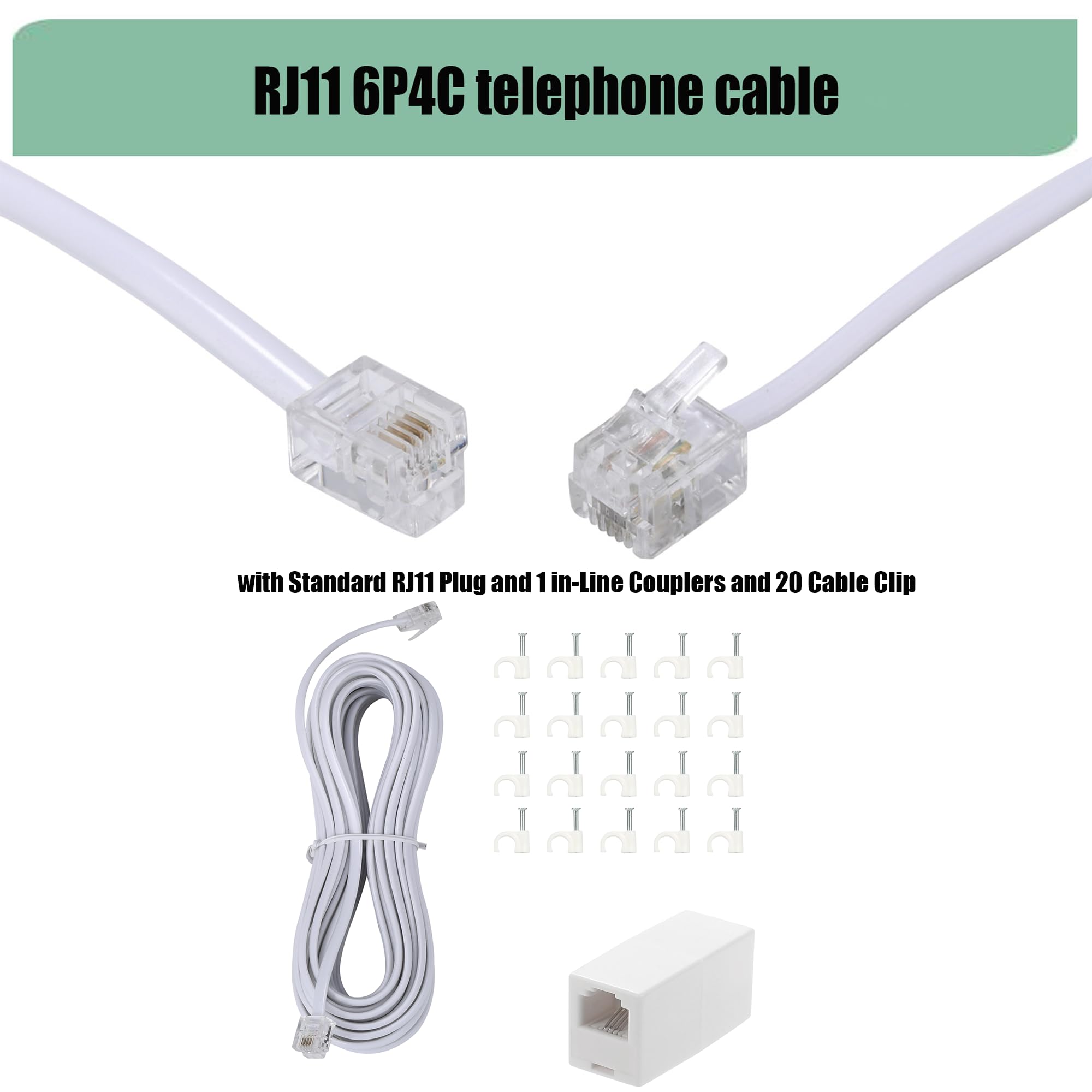 [Wide Application] Phone line length of , 6p4c connector.This telephone cords for landline phone comes with two RJ11 standard phone connectors on both ends and 1 inline coupler, which can be used for telephones, fax machines, modems, answering machines, etc