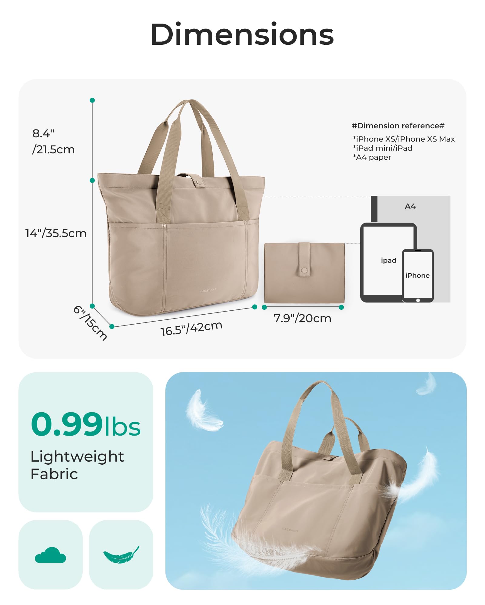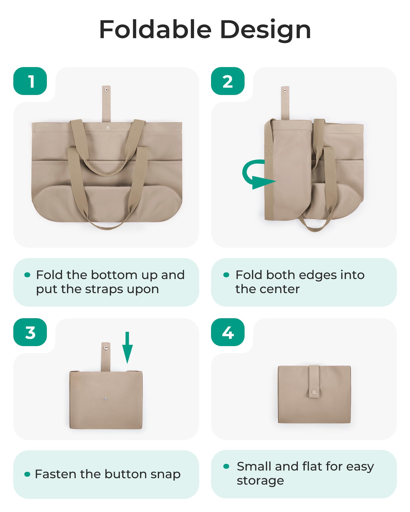 Compact Size-Unfolded: 16.5''L x 6''Wx 14''H; Folded: 7.9'' x 7''; The large tote bag can be folded into a small pouch, easy to put into your backpack, travel bag, duffle bag or suitcase, save your space.