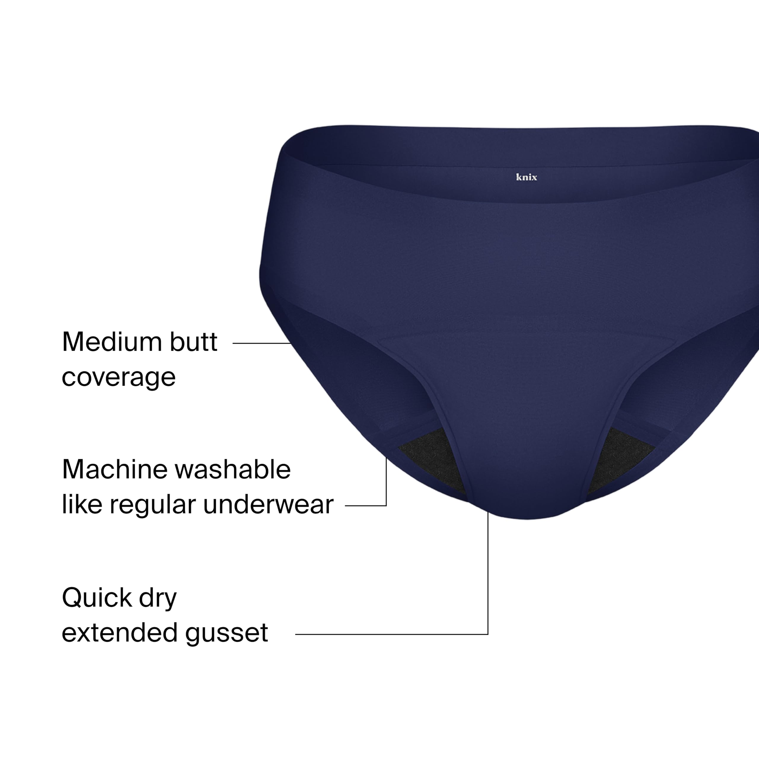 Quick Dry, Extended Gusset: Knix underwear has a 9-inch gusset that stops blood, pee, or sweat from leaking through