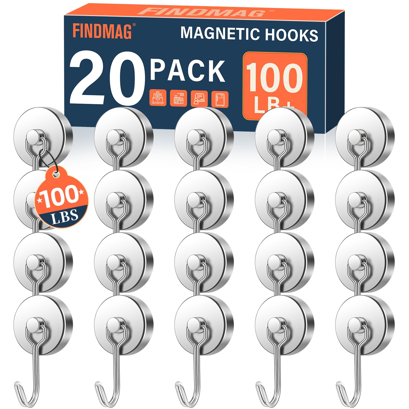 Durable Build with Polished Finish: Crafted with N52 Grade neodymium magnets and a steel base, each hook features a mirror-like nickel coating that resists rust, corrosion, and scratches. The sleek finish not only adds durability but also maintains a clean, professional look for long-term use.