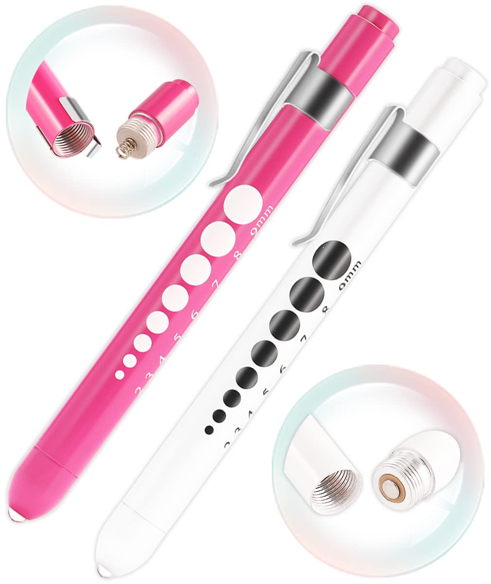 【PENLIGHTS】: Made of premium aluminum alloy and led bulb, a 5cm-ruler chart, pupil gauge, metal pocket clip. The penlights can be powered by 2 pieces AAA batteries with keeping the positive pole “+” direction of batteries to the pen bulbs.