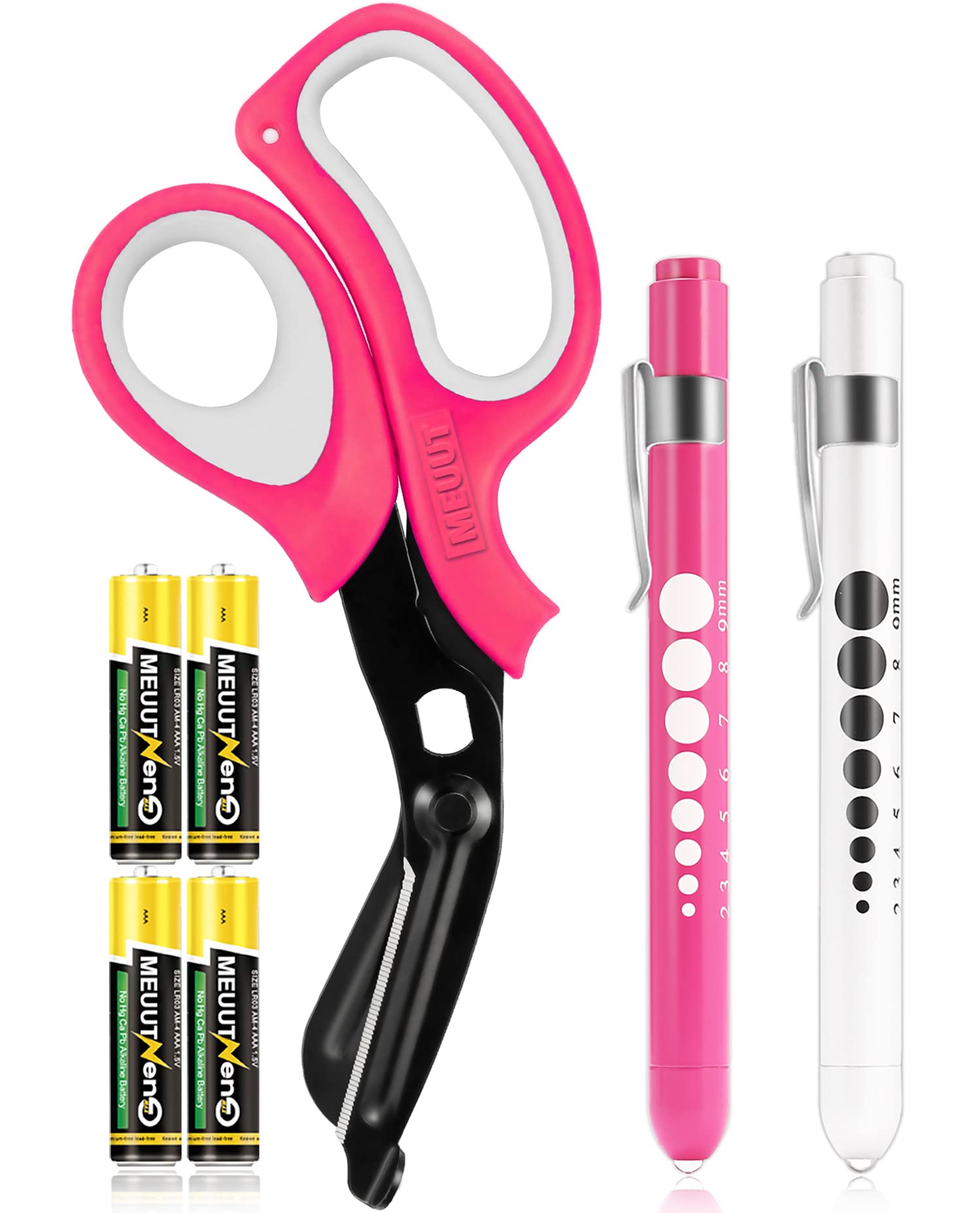 【PERFECT MED KIT】: Contained 2 pack LED medical pen lights for nurses with 4 AAA batteries, and 1 pack medical scissor trauma shears, Perfect medical supplies penlights for nurses doctors EMT