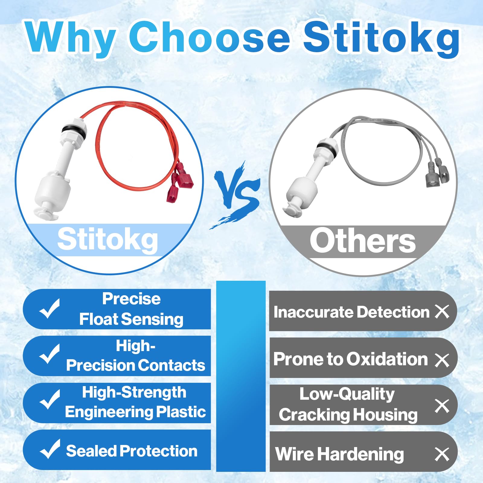 【Easy Installation & Time-Saving】:Made of high-quality polymer material, the float switch is corrosion-resistant, responsive, and designed to resist internal scale buildup. It features a plug-and-play design for convenient installation—simply replace the old part to get your ice machine back to work, eliminating the need for complex repairs and saving you time and effort