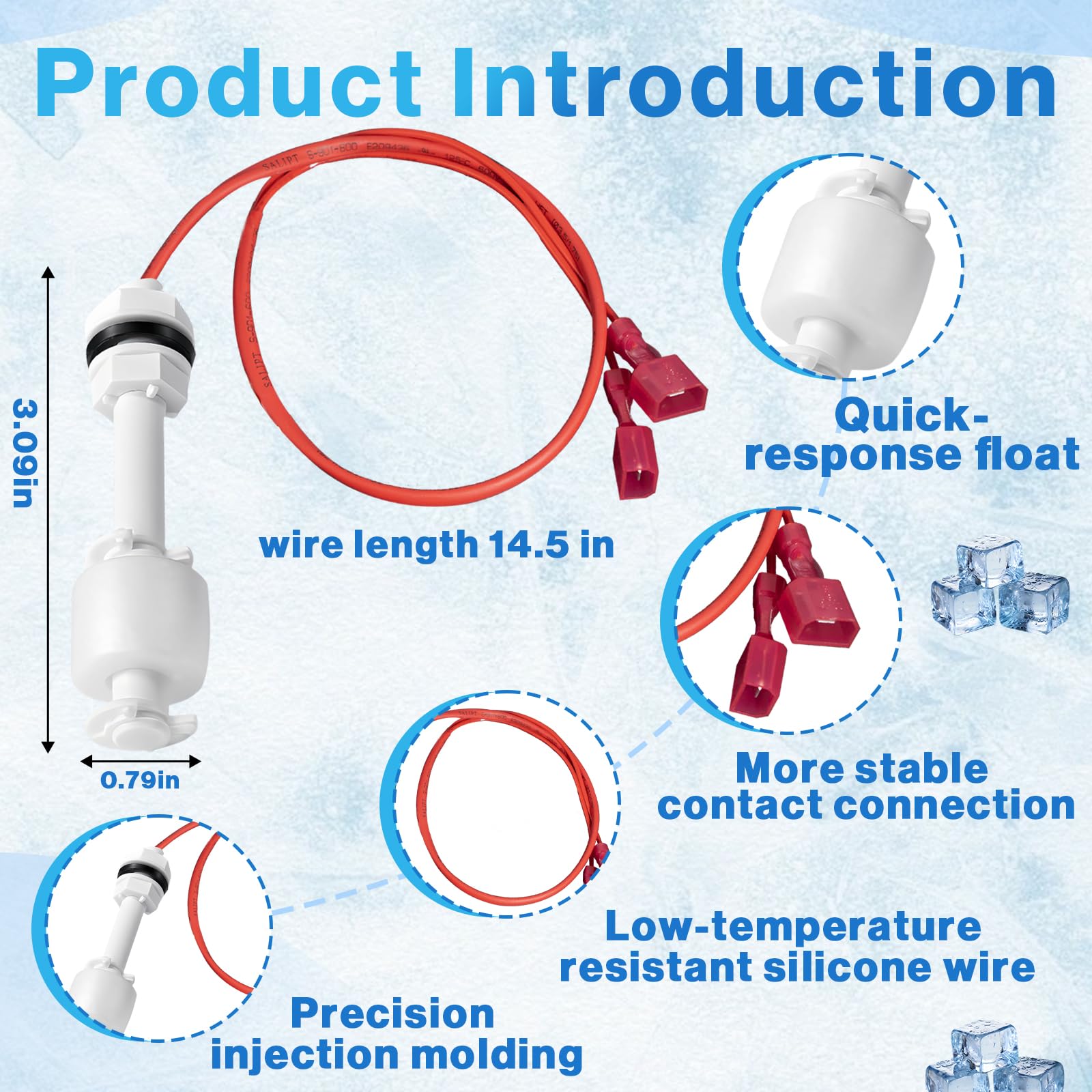 【Solves Common Ice Machine Issues】:Effectively addresses typical problems such as failure to enter the ice harvesting cycle, continuous water feeding into the freezing area (leading to water tank depletion), and large ice slab formation in the freezer compartment. Replacing a faulty float switch can resolve these issues and restore proper ice-making performance