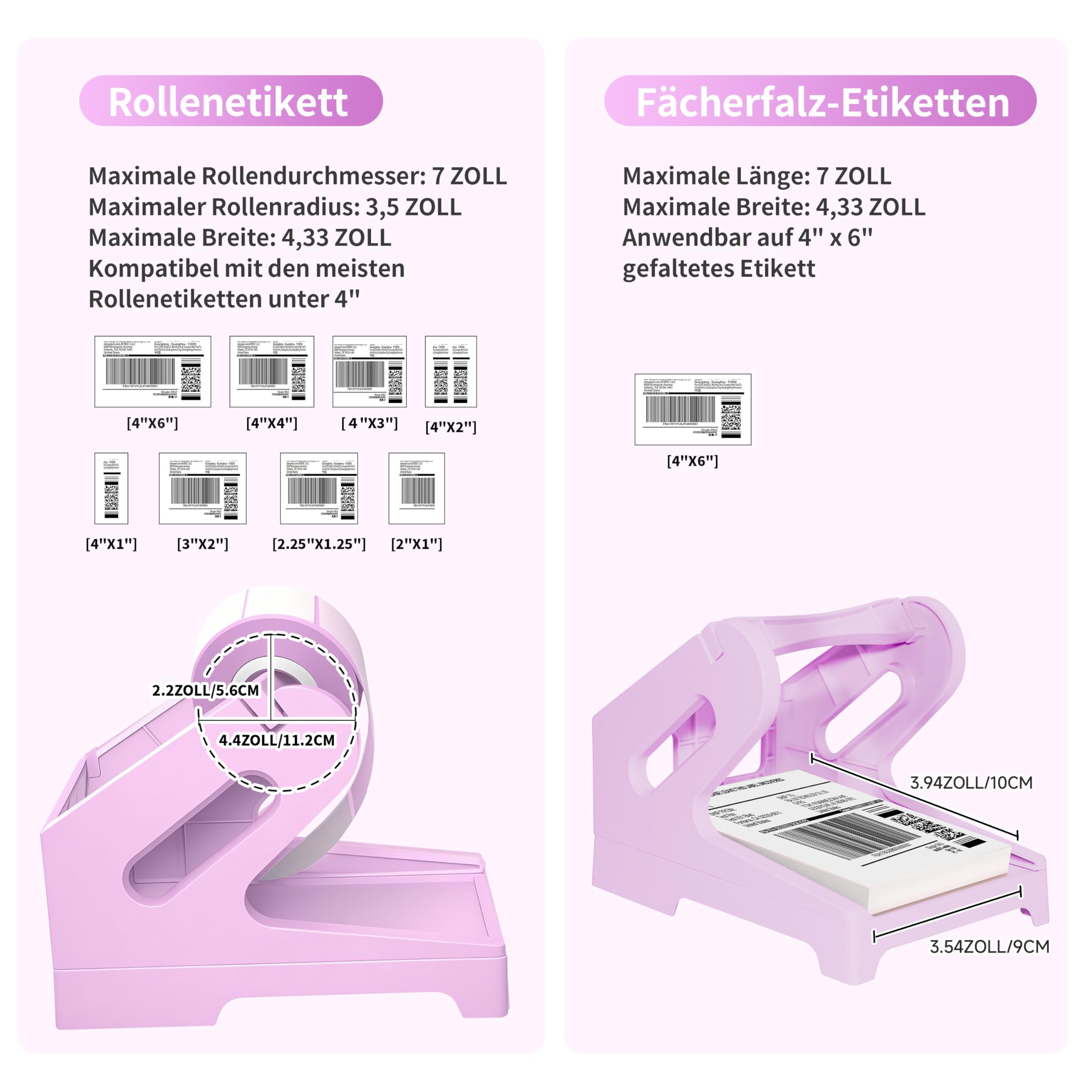 【User-friendly Setup】 Say goodbye to intricate assembly. You can have it ready in just a few moments, greatly simplifying your label printing routine. The maximum outer diameter for the roll labels is 7 inches, while the fan-fold labels have a maximum length of 7.3 inches and a width of 4.3 inches
