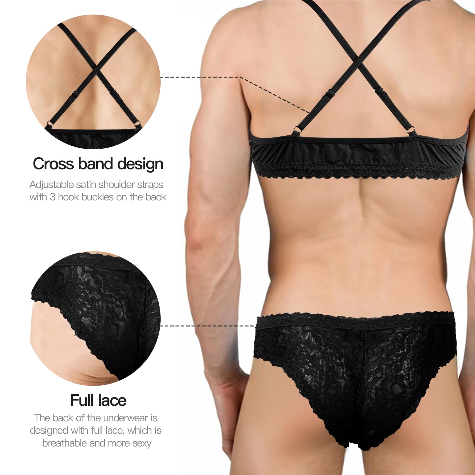 This Lingerie Set is designed for men who want to express their sexy side and embrace it with confidence. The set includes man-designed thong underwear, designed for a snug yet comfortable fit; as well as a breathable, and stretchable materials. The bra gives an added flash of feminine style and will make you feel especially Sexy.