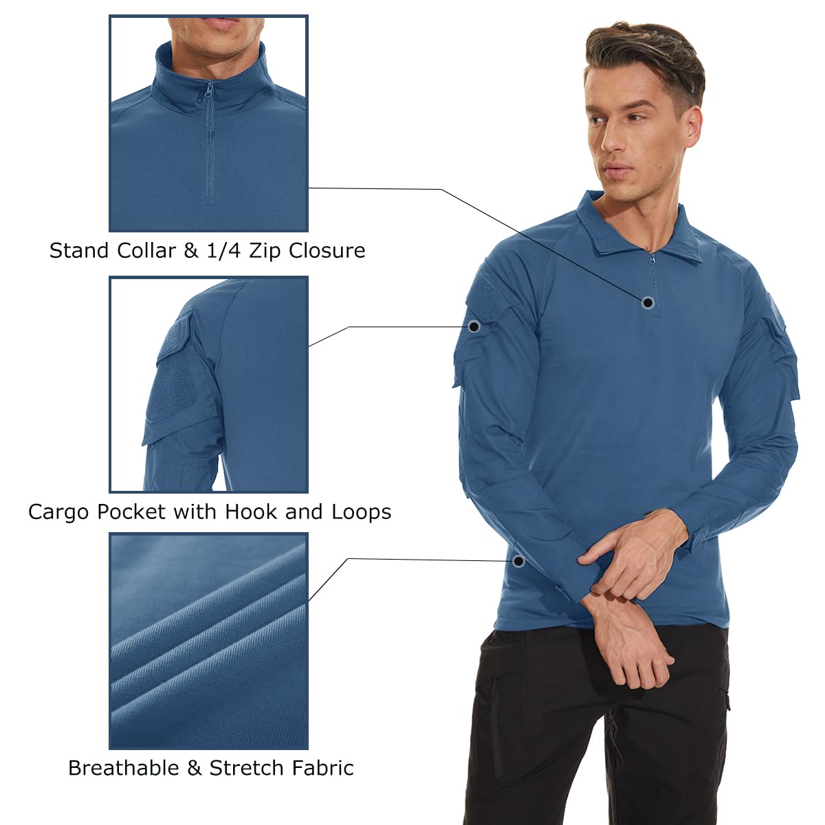 【Versatile Tactical Style】: This shirt is especially suitable for tactical-related uses, such as military, combat, airsoft, security, paintball, and army use, providing unrestricted wear under tactical vests, jackets, coats, and hoodies.