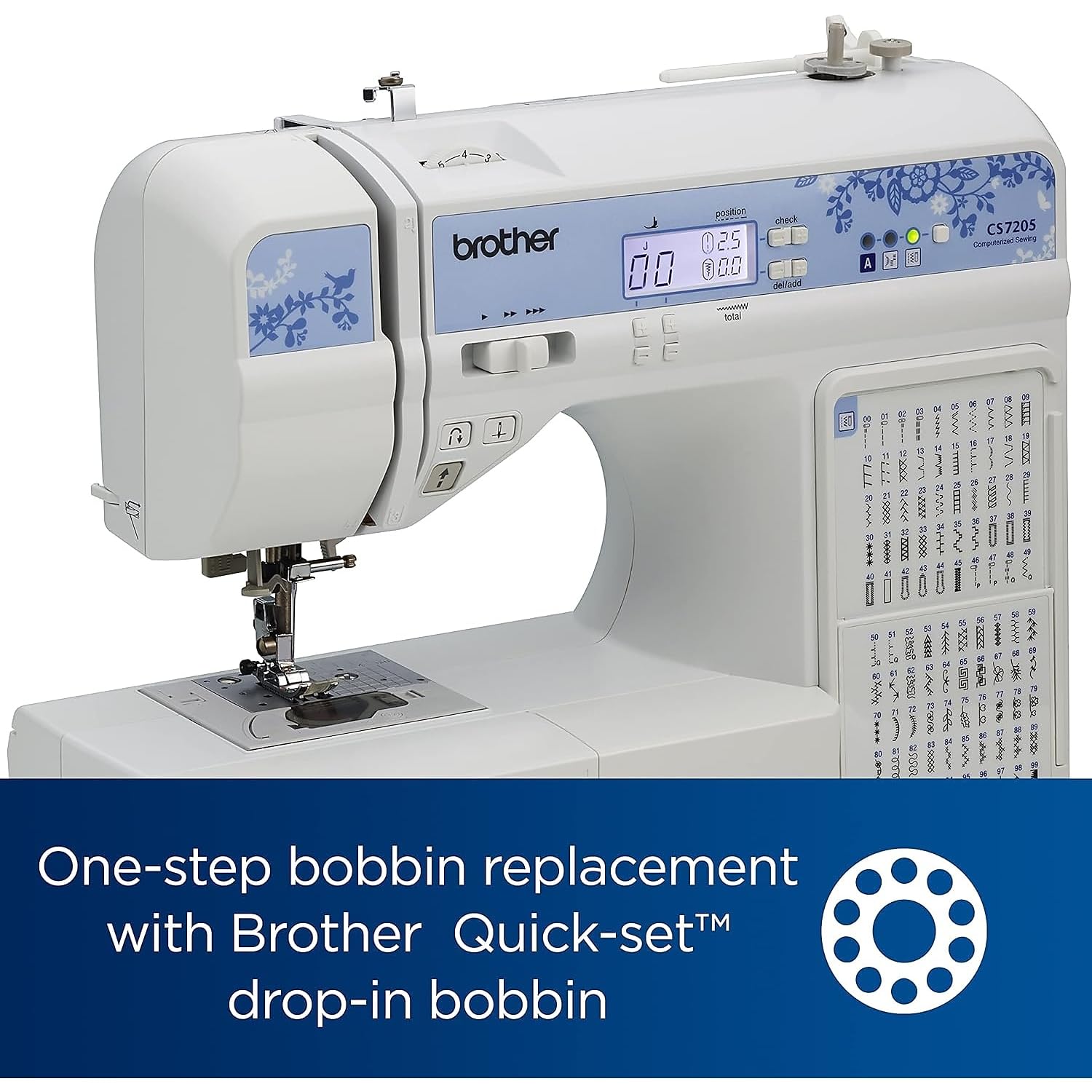 150 UNIQUE BUILT-IN STITCHES: The Brother CS7205 sewing and quilting machine includes 150 built-in stitches including utility, decorative, heirloom, 1 alphanumeric font, and 8 1-step auto-size buttonholes