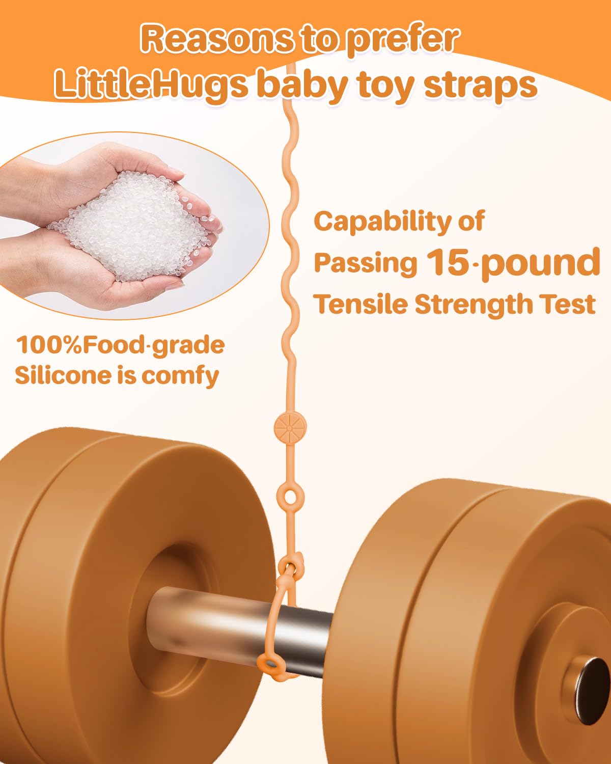 Adjustable Buckle Design: LittleHugs baby tether strap is designed with advanced bending, stretching, and adjustable features, allowing for a customized fit. The toy holder for stroller has a diameter of 5.0mm, making it easy to use on baby pacifiers, teethers, toys, bottles and more. It is an essential accessory for busy parents on the go.