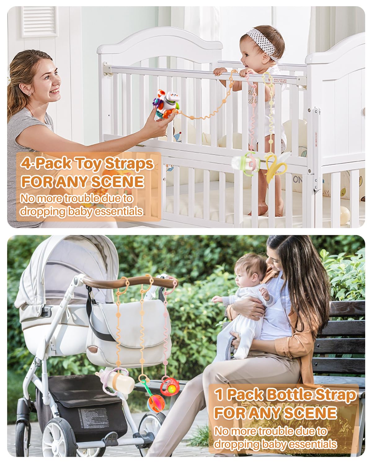 What You Get: 4 baby toy straps and 1 bottle holder string. If our products encounter any quality issues, please reach out to us promptly, and we will provide a resolution within 24 hours during business days. Warm Tip: Please ensure disinfection by soaking in boiling water before initial use. It is popular to give baby Christmas toys during the upcoming New Year!