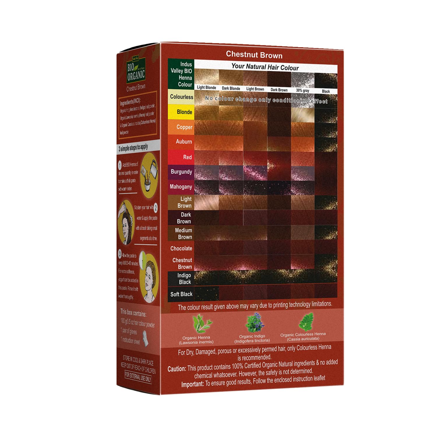 ✅𝐍𝐨 𝐂𝐡𝐞𝐦𝐢𝐜𝐚𝐥 & 𝐒𝐲𝐧𝐭𝐡𝐞𝐭𝐢𝐜𝐬 - Since it is 100% Organic and made without any sort of chemicals or synthetic fertilizers, it is a safe choice as a coloring option. Contains natural ingredients like henna, indigo, and organic herbs that may strengthen hair and promote shine.