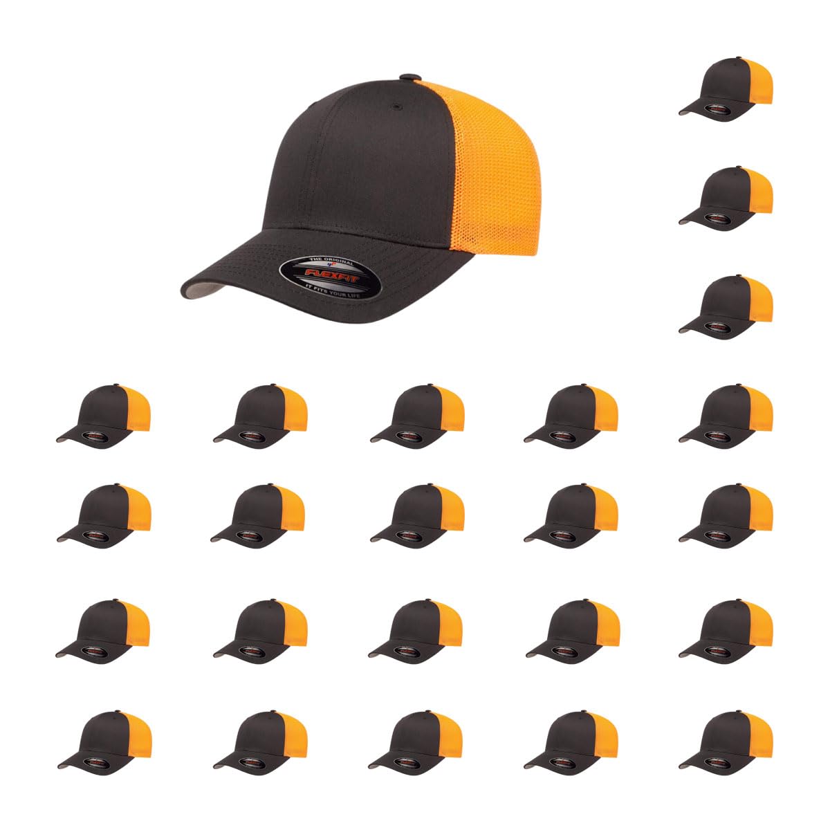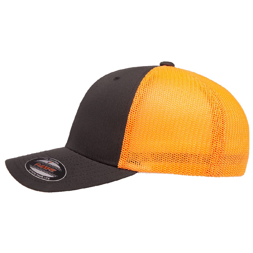 **SIZING REMINDER**: Measure your head and refer to the size chart for the perfect fit. Classic Trucker Style with a Performance Twist: Mid-profile structured crown and mesh back panels meet Flexfit stretch-fit technology for superior comfort and shape retention