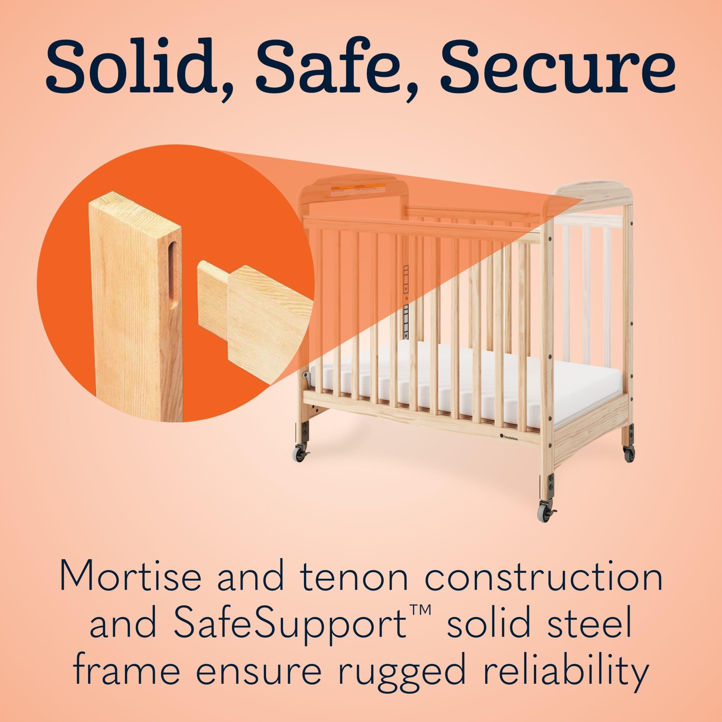 Long-Lasting Construction: The Serenity Compact Clearview Crib is constructed from durable, mortise and tenon wood to withstand use in a commercial childcare environment.