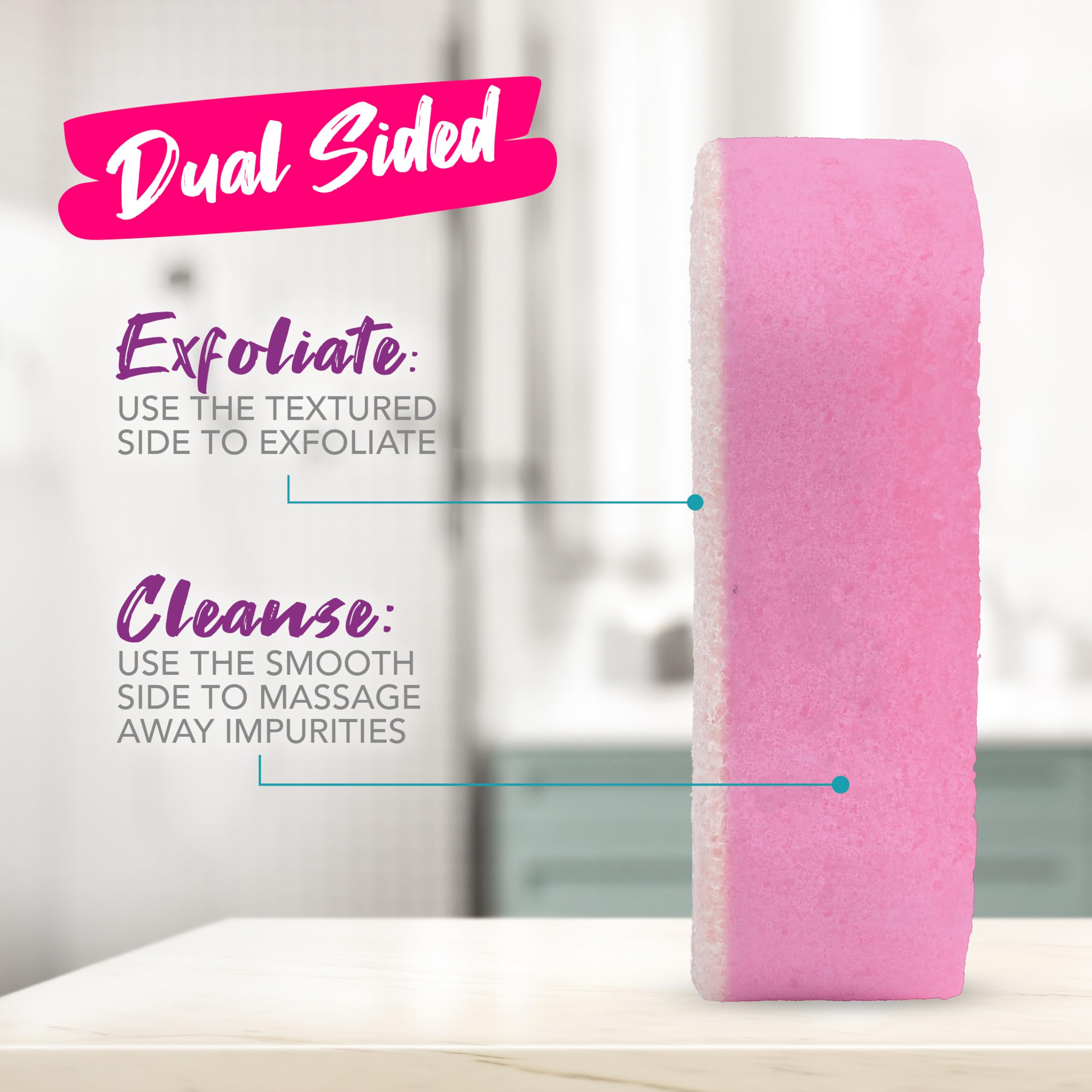DUAL-TEXTURED: Use the buffer to exfoliate and soften skin. Use the soft side to cleanse and moisturize.