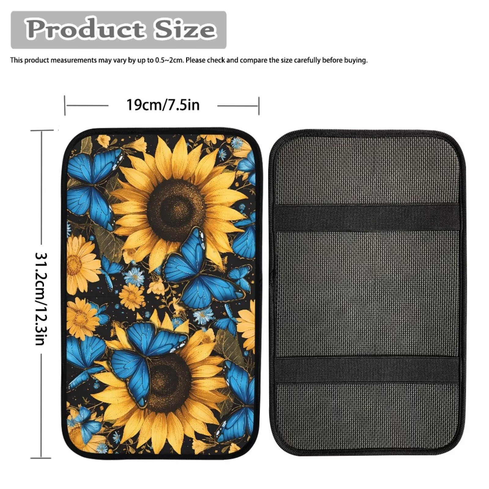 Our armrest pad is 12.6 inch long, 7.5 inch wide that matches most of the auto car center console armrest box, it covers whole top and make it looks different by stylish patterns