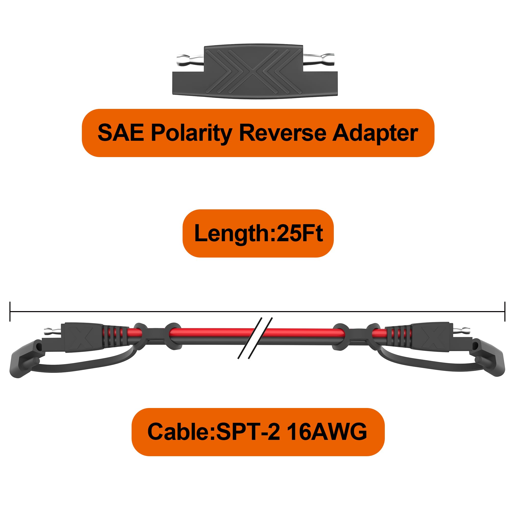 Package Include: 25FT SAE extension cable and SAE polarity reverse adapter.