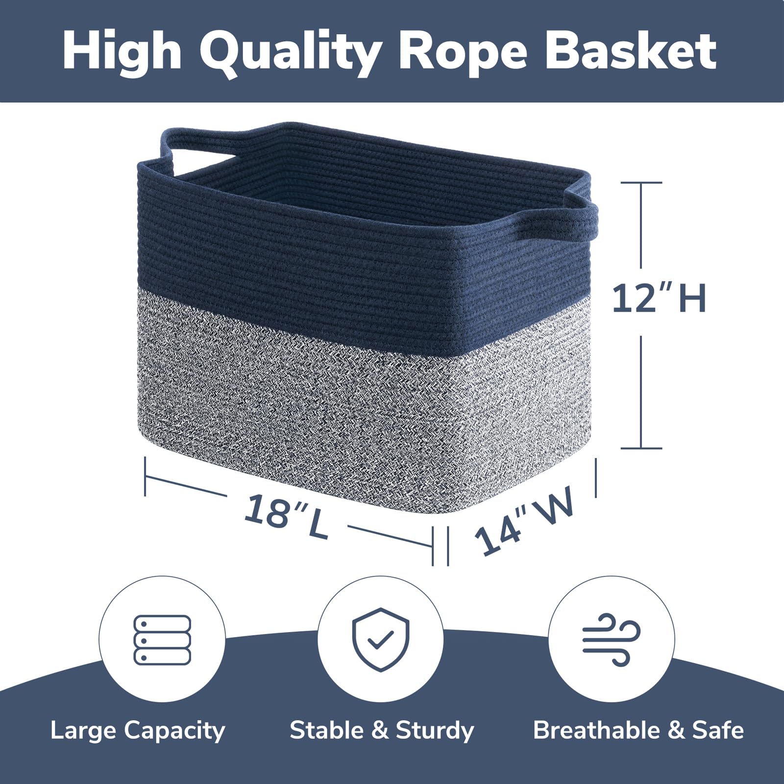 Decorative Toy Baskets with Handles - Material: Cotton - Size: 18 x 14 x 12 inches - Multiple Use: You can have the storage basket in nursery, living room, bedroom, bathroom or laundry room to hold your clothes, blankets, toys storage etc. - Machine Wash: You can put the basket in a laundry bag to wash it by machine or hand wash.