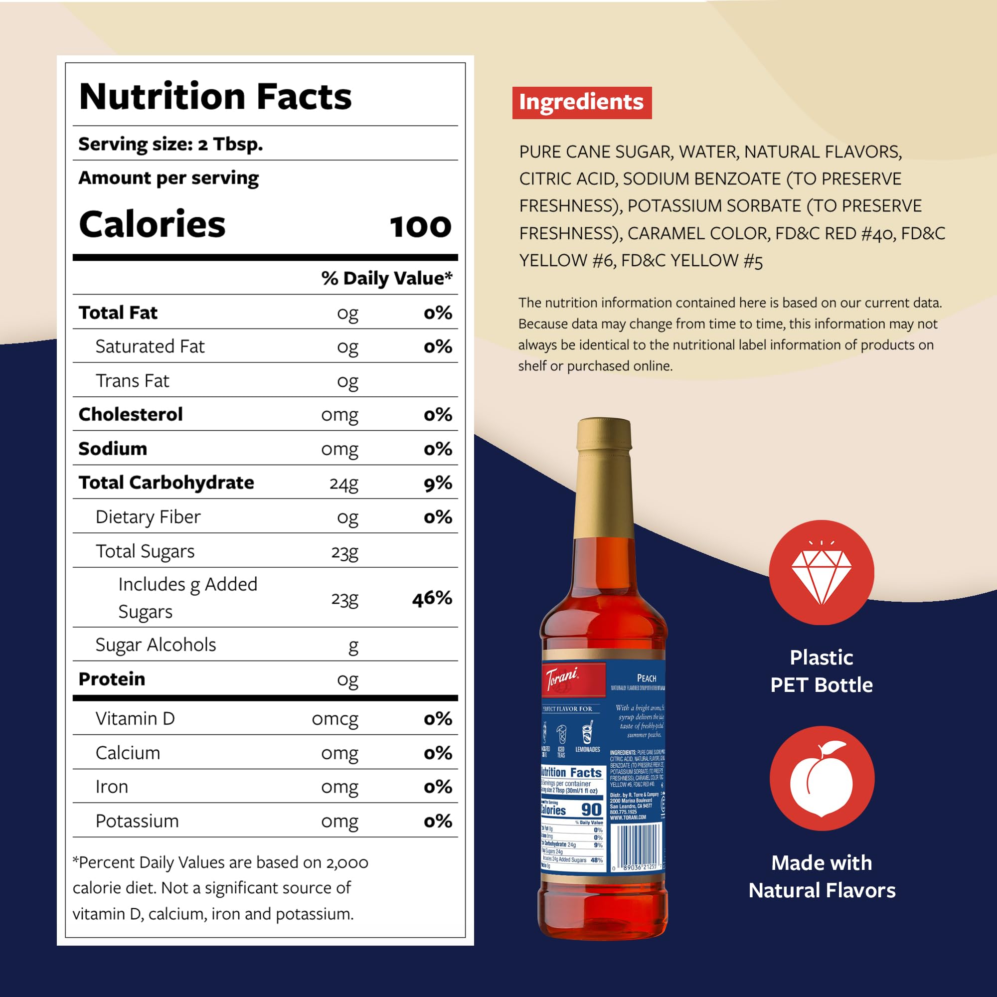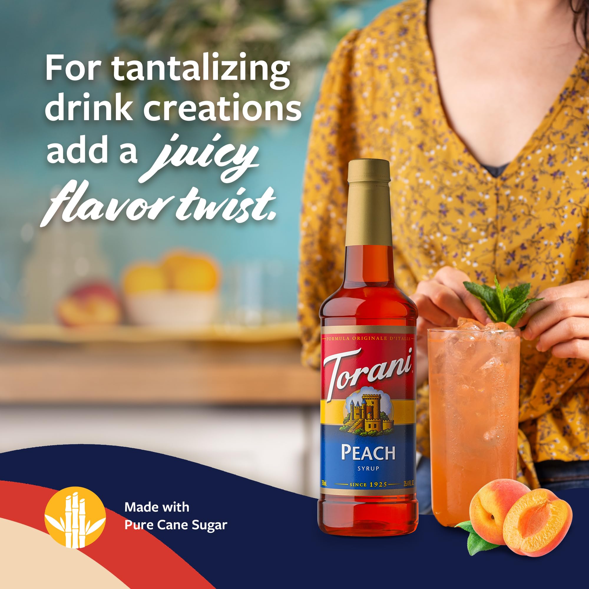 PEACH SYRUP WITH PUMP: Enjoy a splash of Torani syrup in your favorite drink, with an intensely sweet and juicy flavor inspired by fresh, ripe peaches.