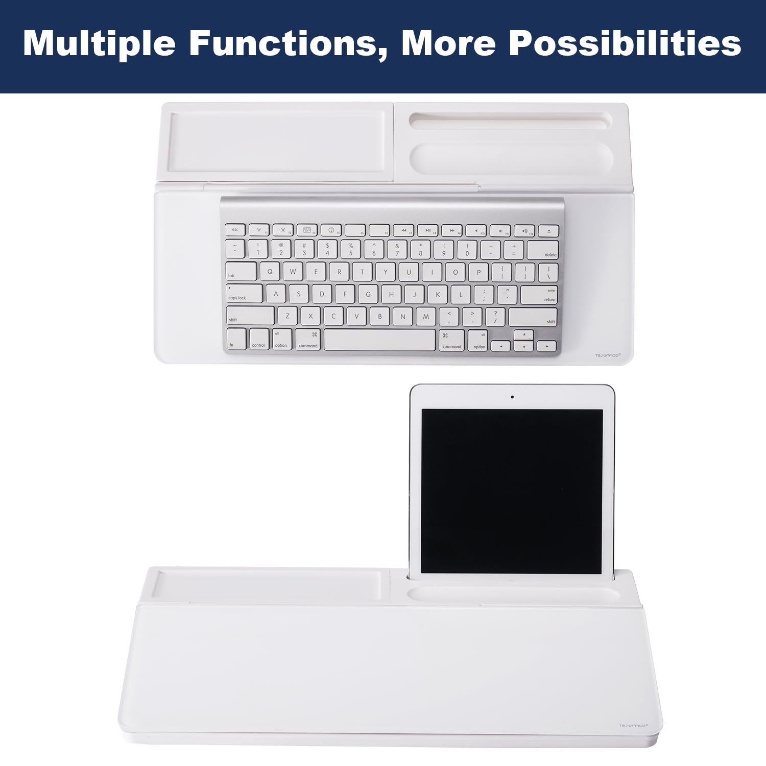 HIDDEN STORAGE & PAD/MOBILE TRAY: De-clutter your desk by storing markers, magnetic eraser and other desktop accessories in the opening drawer or place markers on the accessory tray for quick access. And one more long tray on the top of the dry erase white board for your pad or mobile.