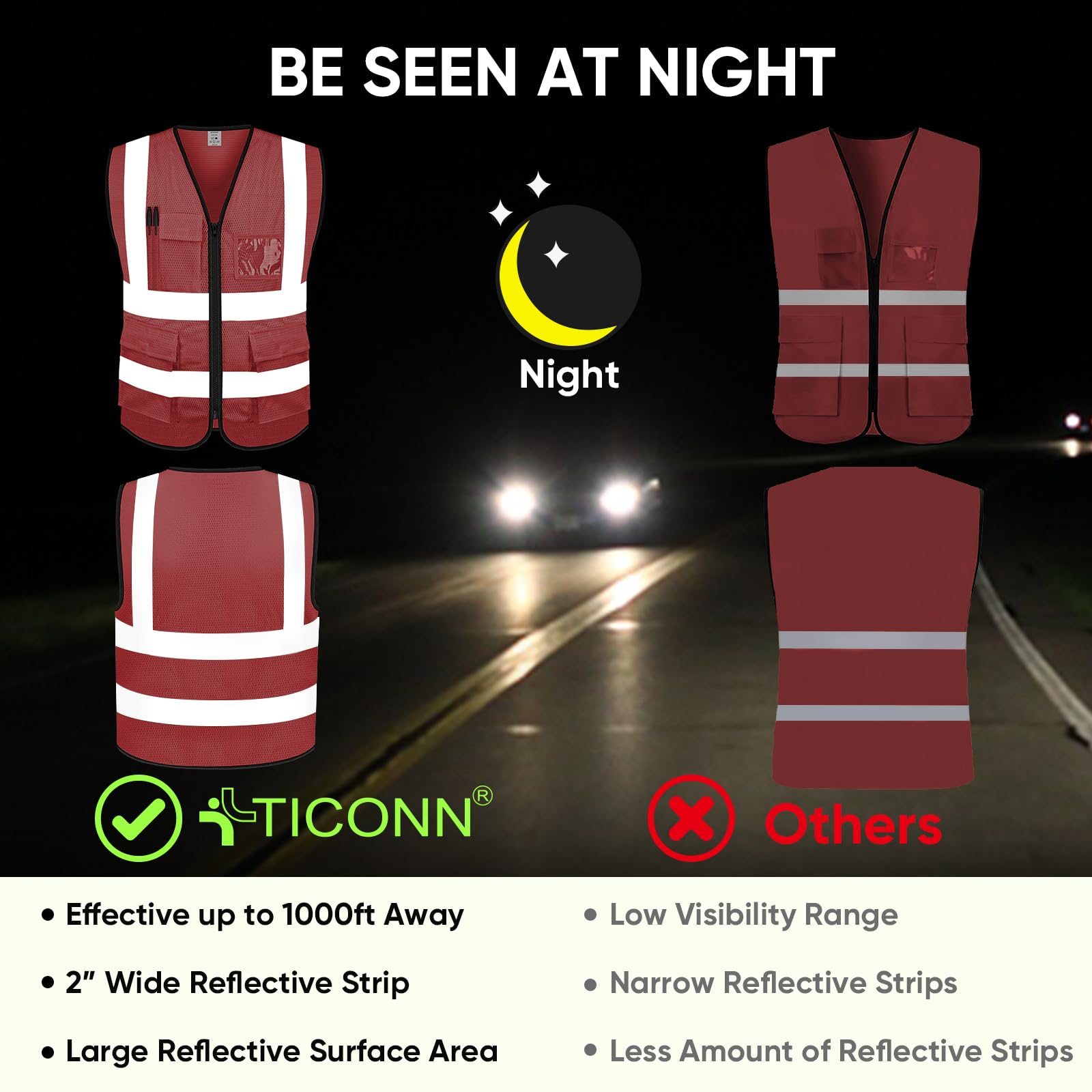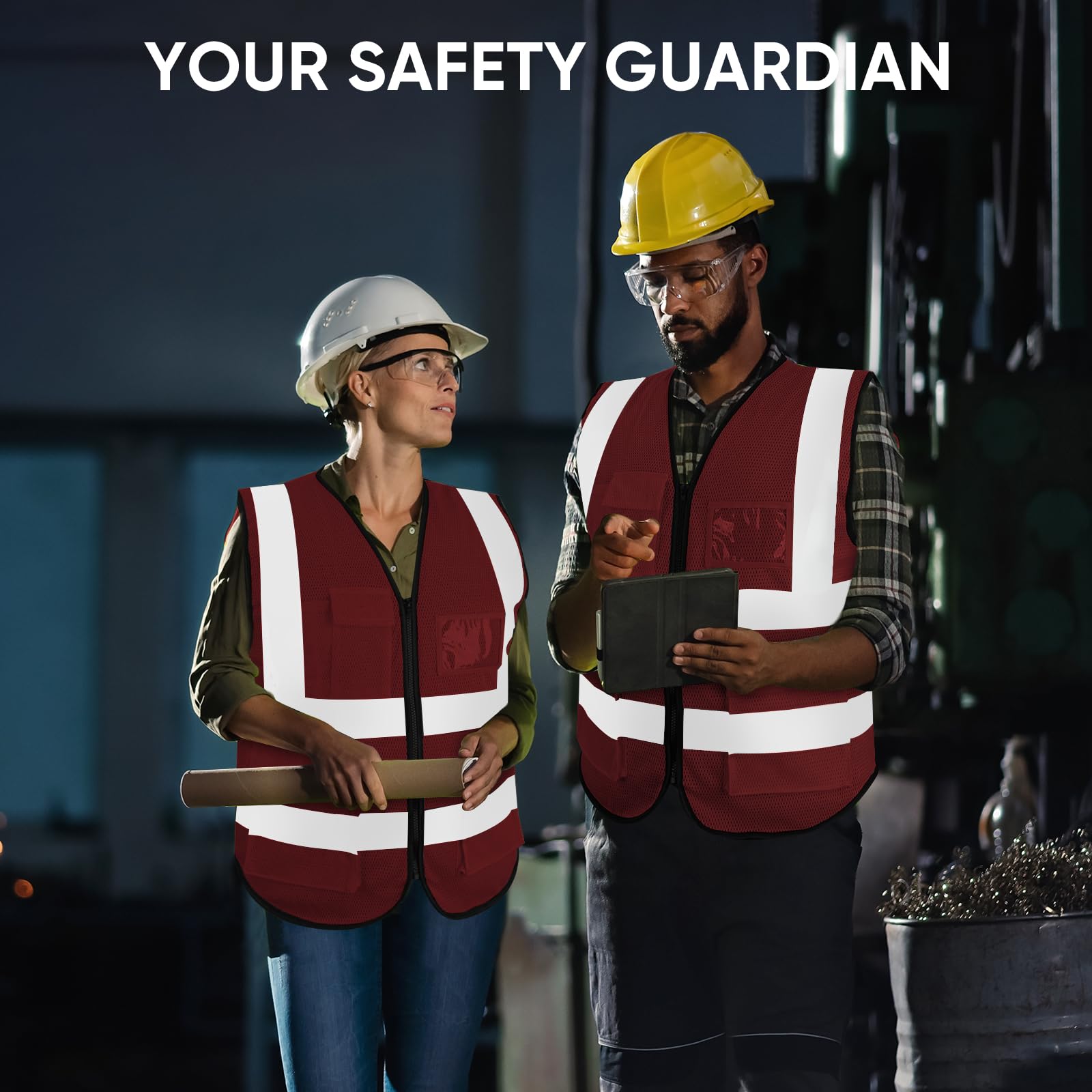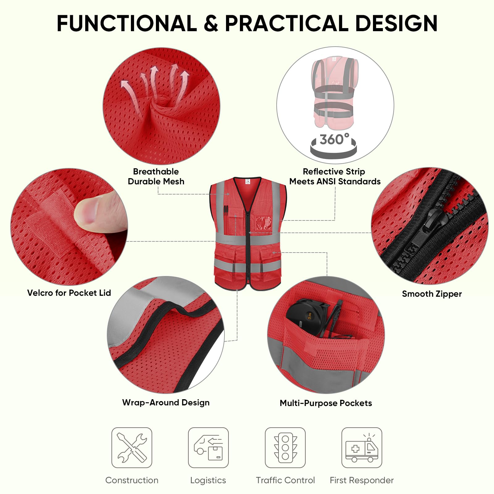 [PREMIUM MATERIAL] The reflective vest is built with premium material such as breathable yet durable polyester mesh, and smooth tough zipper, and pocket lids have velcro to secure your tools or personal belongings. Reflective strips width and surface area meet ANSI stands.